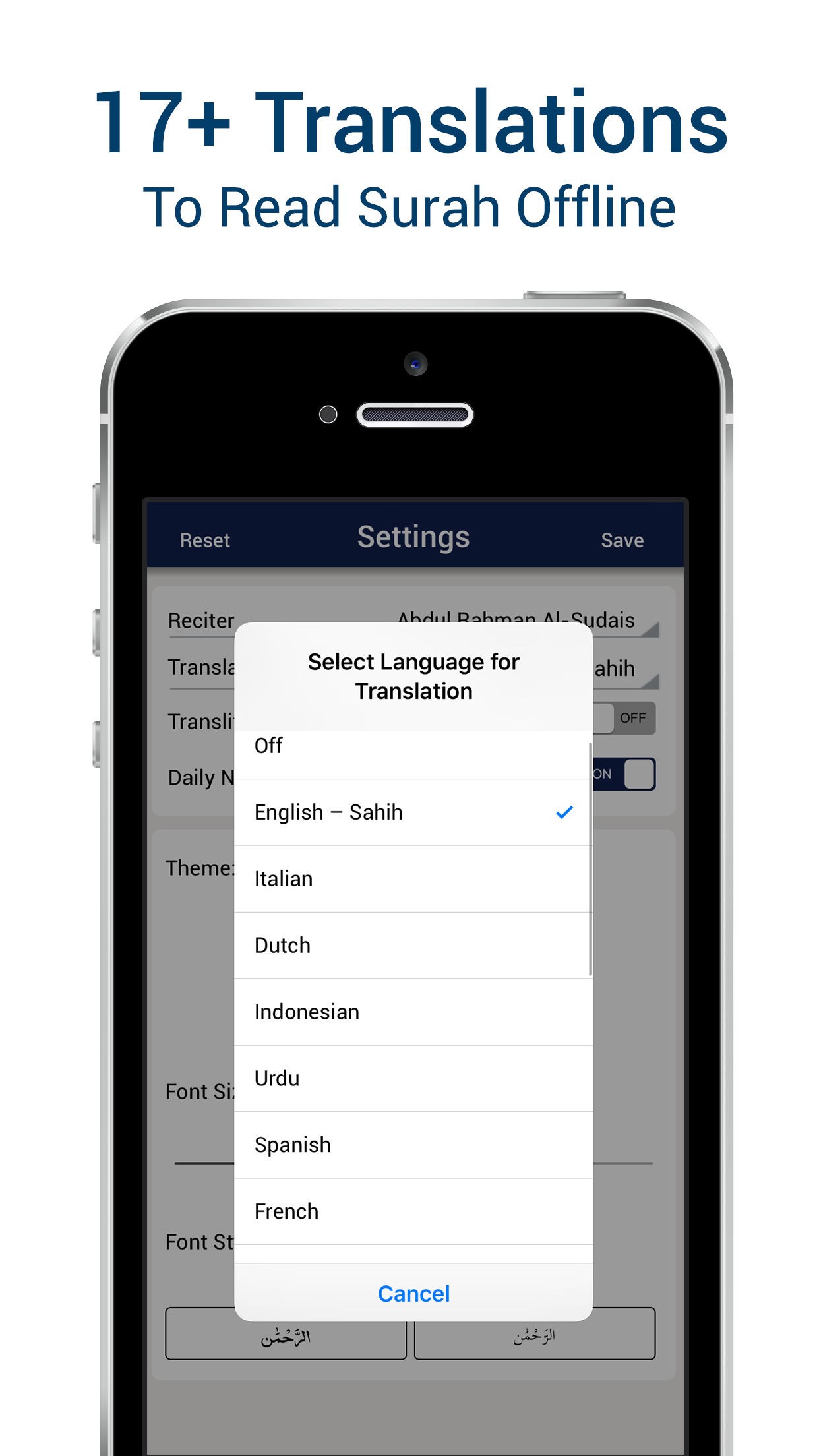 • Mp3 audio recitation to help the user in improving his Arabic pronunciation