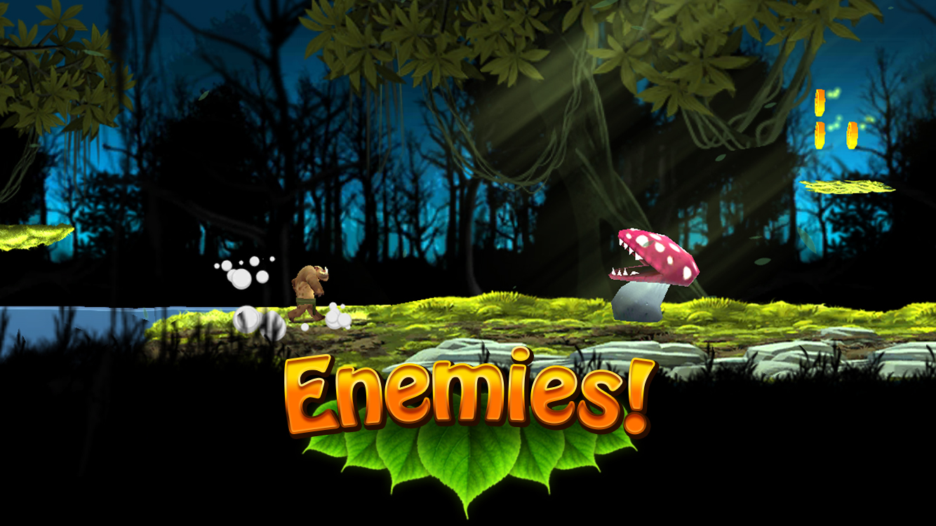 ● Beautiful optimized animated graphics with trees moving, vines shaking, enemies biting, running, jumping, smashing!