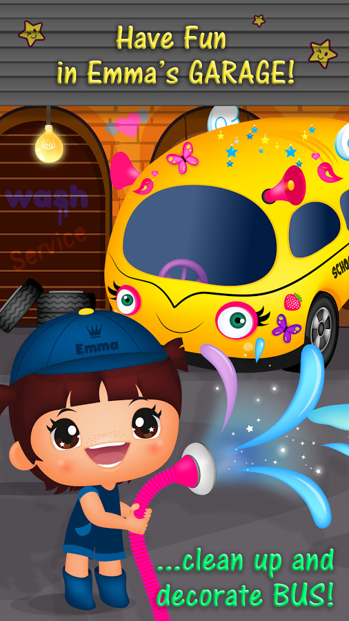 - Open the garage, clean up and decorate Emma's School Bus with many different cool things!