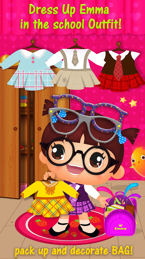 - Sweet Little Emma wants to look perfect for school. Find the the prettiest and coolest school outfit for Emma in the dress up game!