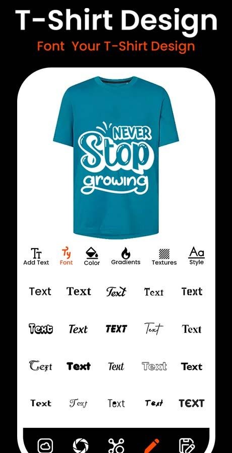 With t-shirt design app, you can easily complete your unique t-shirt designs with our fun and easy-to-use tools in just one click.