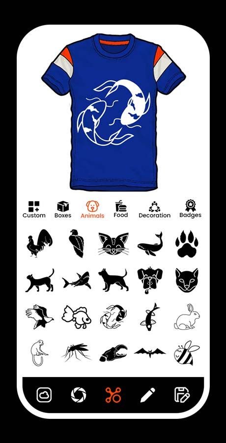 T-shirt design is quick and easy to use app with tons of artwork, colors, t-shirts and patterns.