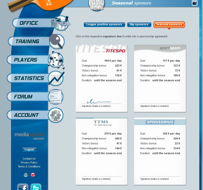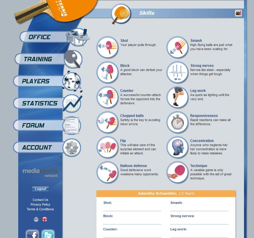 The Table Tennis Manager is a massively multiplayer managergame for ping pong