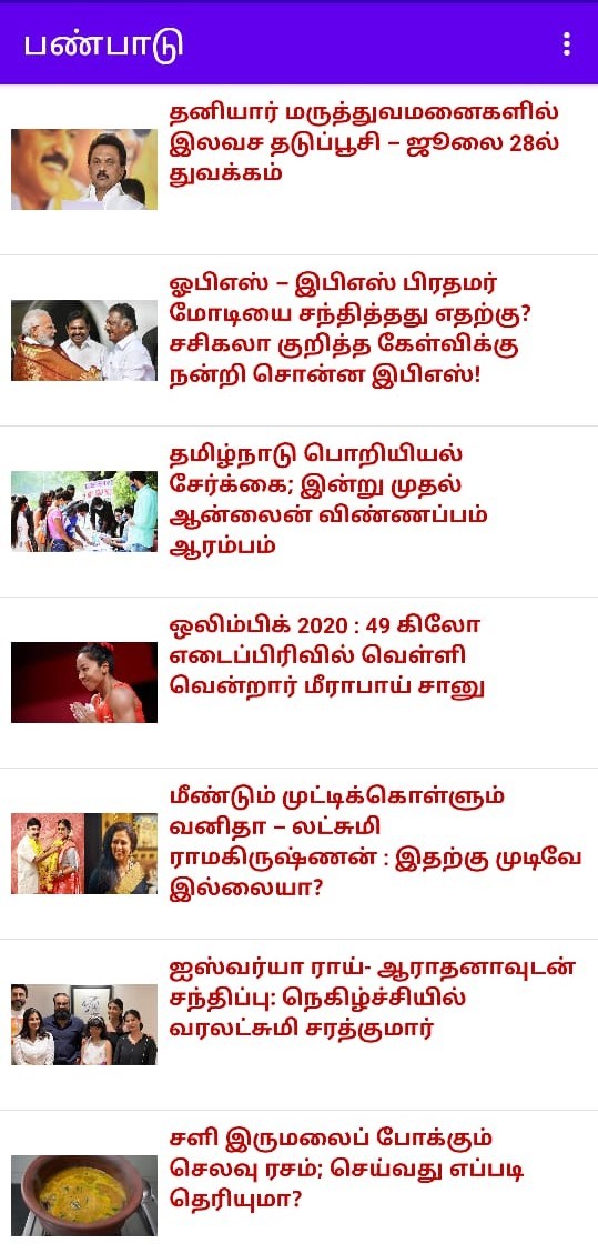 Tamil News Panpadu app for news in tamil, cooking tips in tamil, beauty tips in tamil, medical tips in tamil, tourist places in tamil.