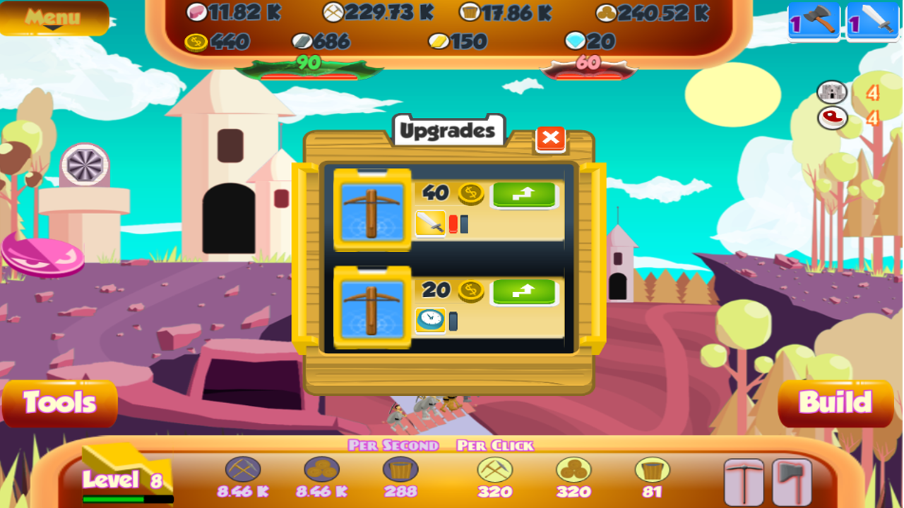 You actually have to buy new tools and upgrade them.To make things easier,it's also a good idea,to buy items,since each item provides certain amount of resource per second.