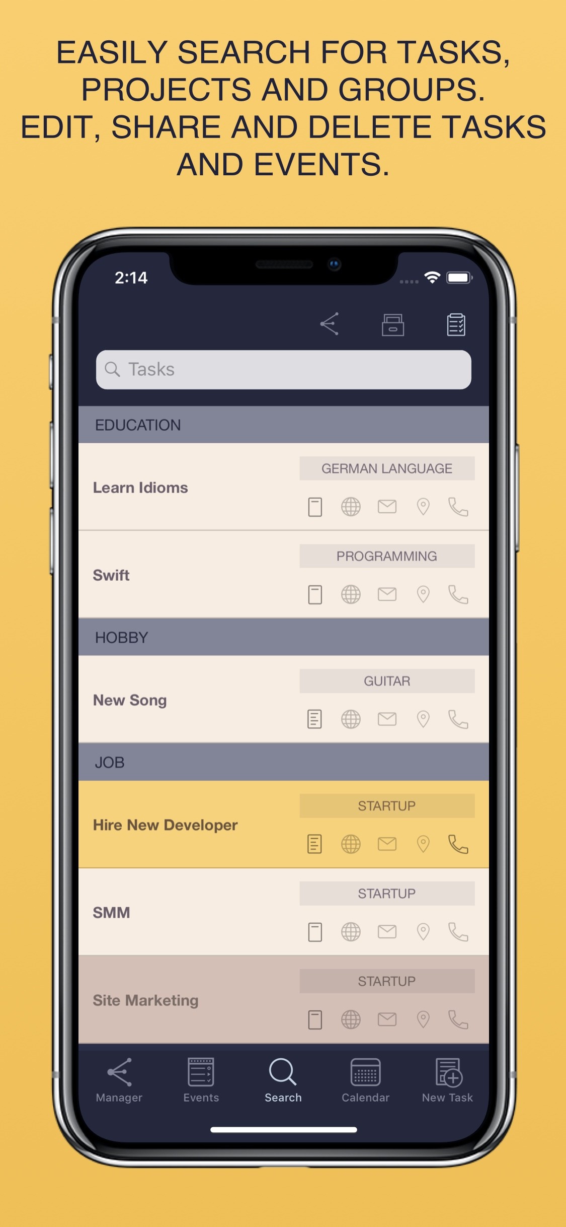Task List app for iPhone and iPad makes it easy to create, keep and manage your tasks, hobbies, routine, to-do lists, notes, events, reminders, business tasks, sport lists, shopping lists and other information that can be presented in a form of a list.