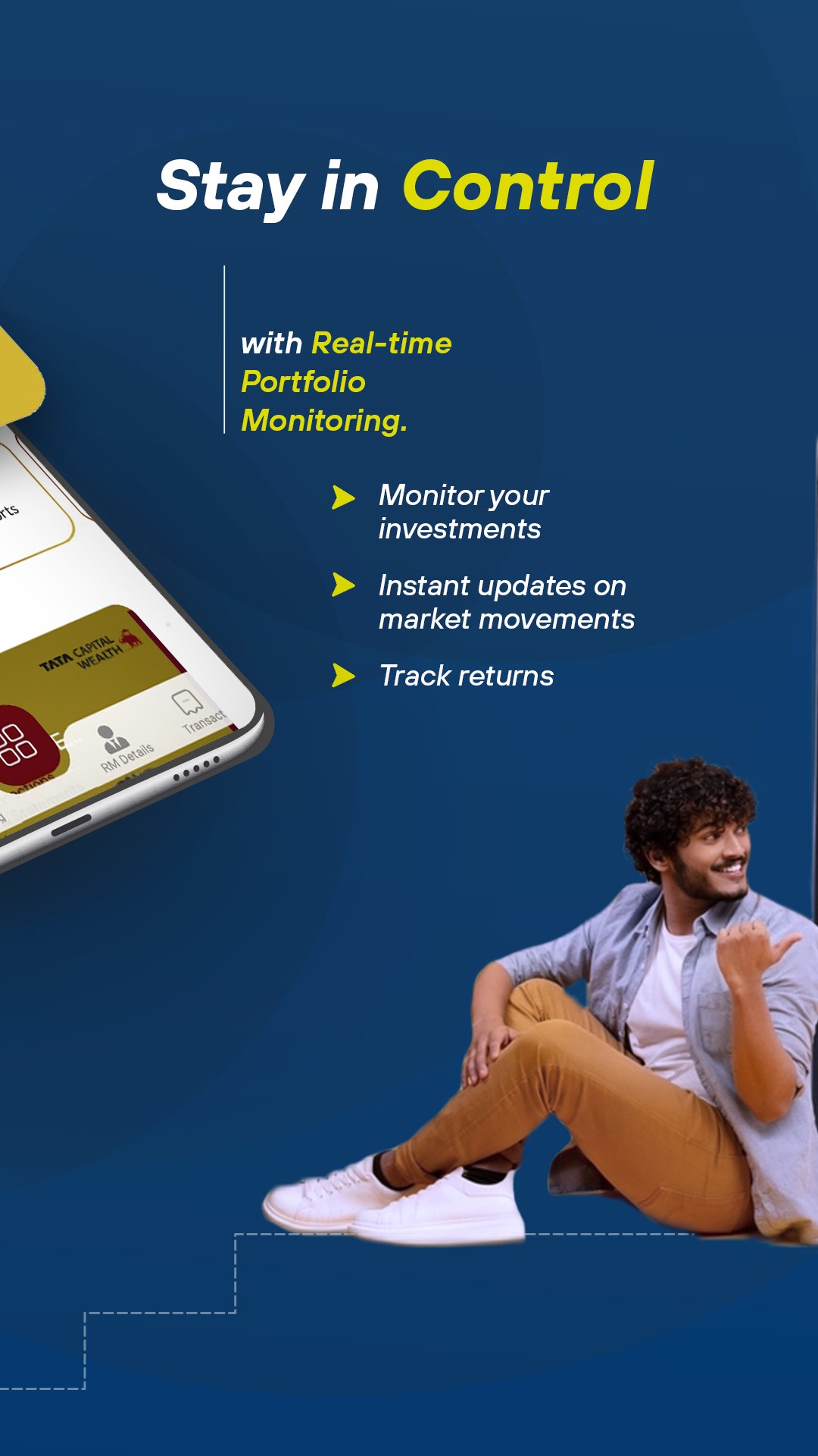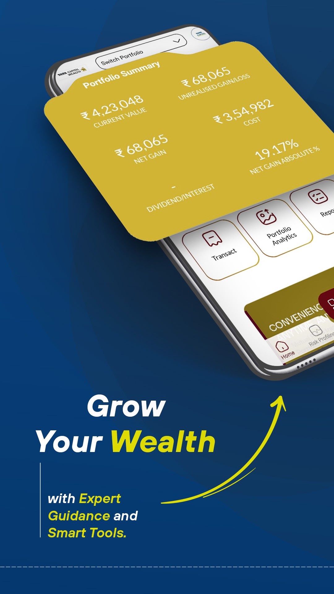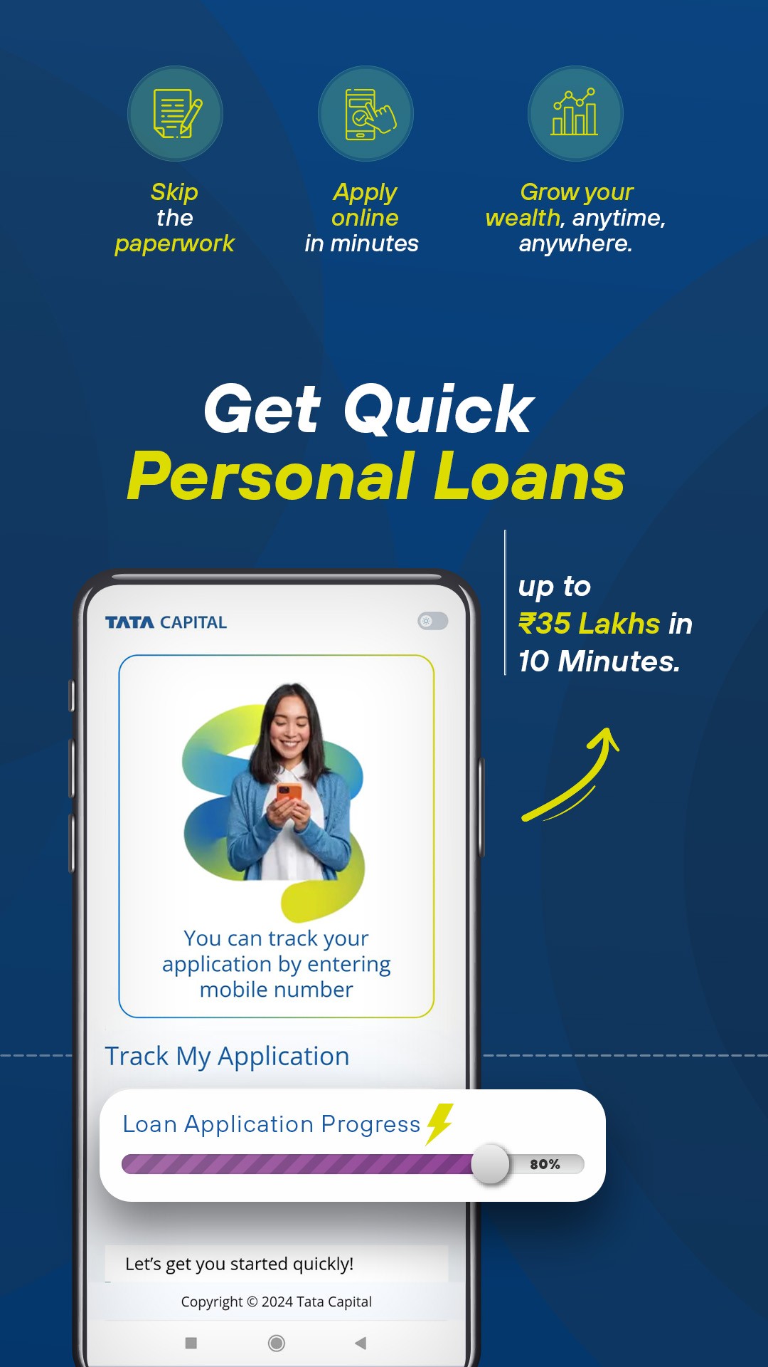 The TATA Capital Loan & Wealth App is a one-stop shop for all your loan & wealth management needs. With this app, you can instantly apply for loans, track your investments, & manage your finances all in one place.Access your online personal loan account from your device, track your repayments, & plan your instalments with our personal loan EMI calculator.