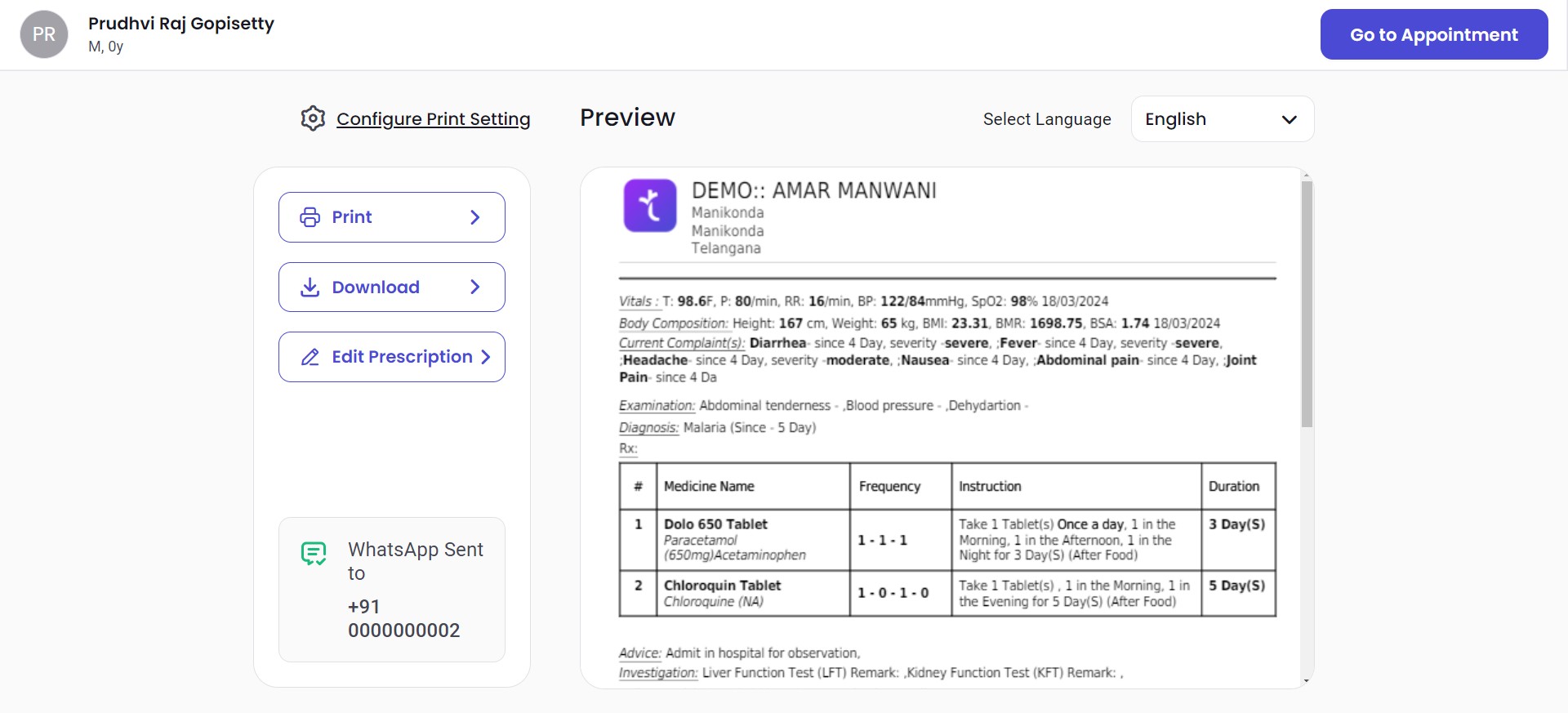 4. Next-generation practice management solution for consulting walk-in as well as distant patients with AI-enabled processes to sort patients and enhance efficiency & outcomes, access & storage of patient’s health records (EMR) and much more.