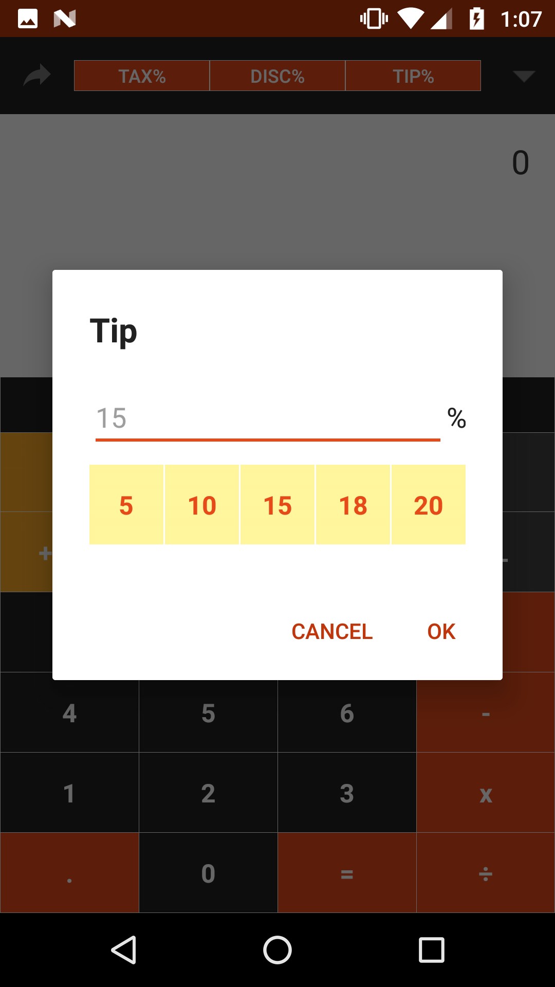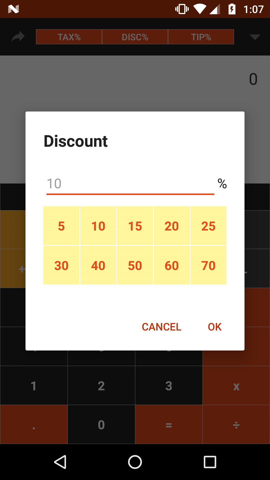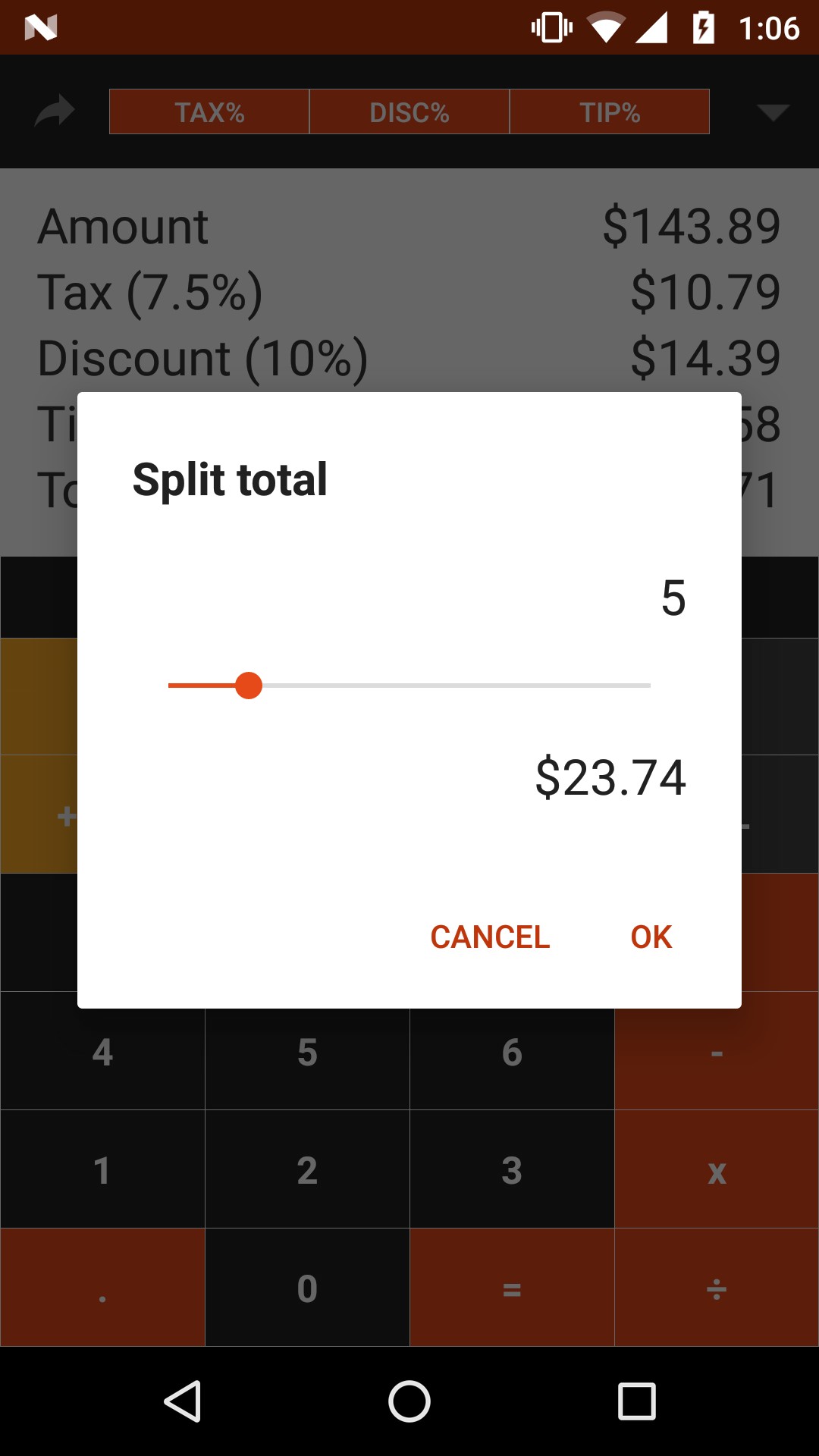 Features: - Calculates sales tax, discount, tip and total - Share results (via SMS, Whatsapp, email ... etc)