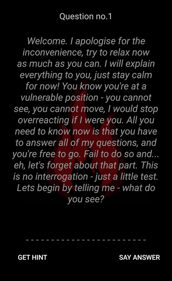 Temptress is a unique riddle game. You wake up tied on a chair, blindfolded - the only thing you can hear around you is the voice of a young woman. You don't have any options other than answer her riddles. Some questions have references to movies, music, culture, religion, history... others require logic.