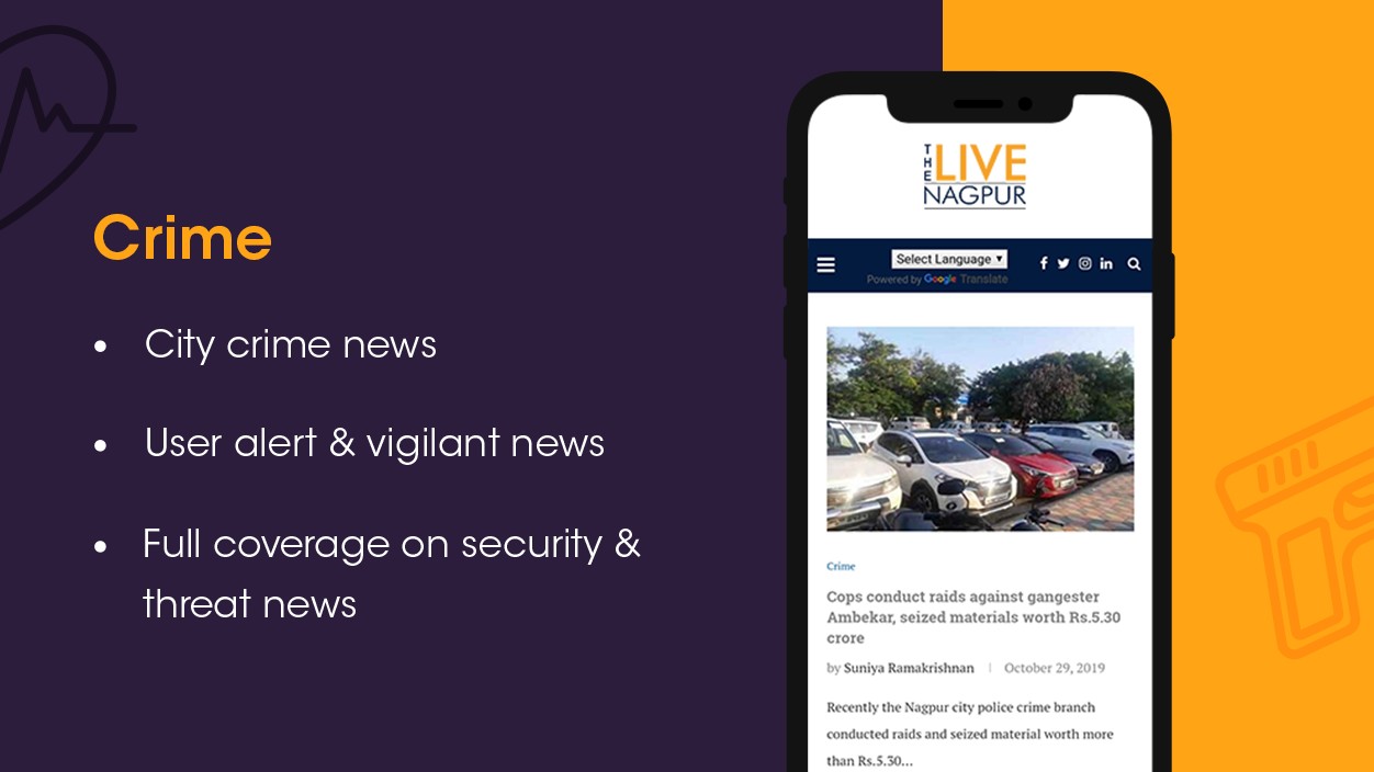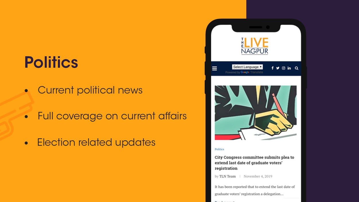 Being a successful online NEWS Portal of Nagpur, The Live Nagpur App brings you all the latest news that is happening in and around the city. The app covers all the latest news and shares only those which are authentic. Through our App, the readers of Nagpur and Vidarbha will get news at their fingertips.