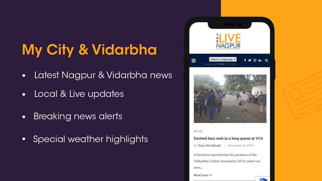 The news featuring in our app mainly includes- My city, Politics, Business, Education, Entertainment, Sports, Health, Vidarbha, Crime, Events, City Development - related news. With this, we also intend to voice the grievances of the common mass and represent the city’s happenings, mishaps policies, programs and activities of the government in an enticing manner which will enable you to stay updated about your city.