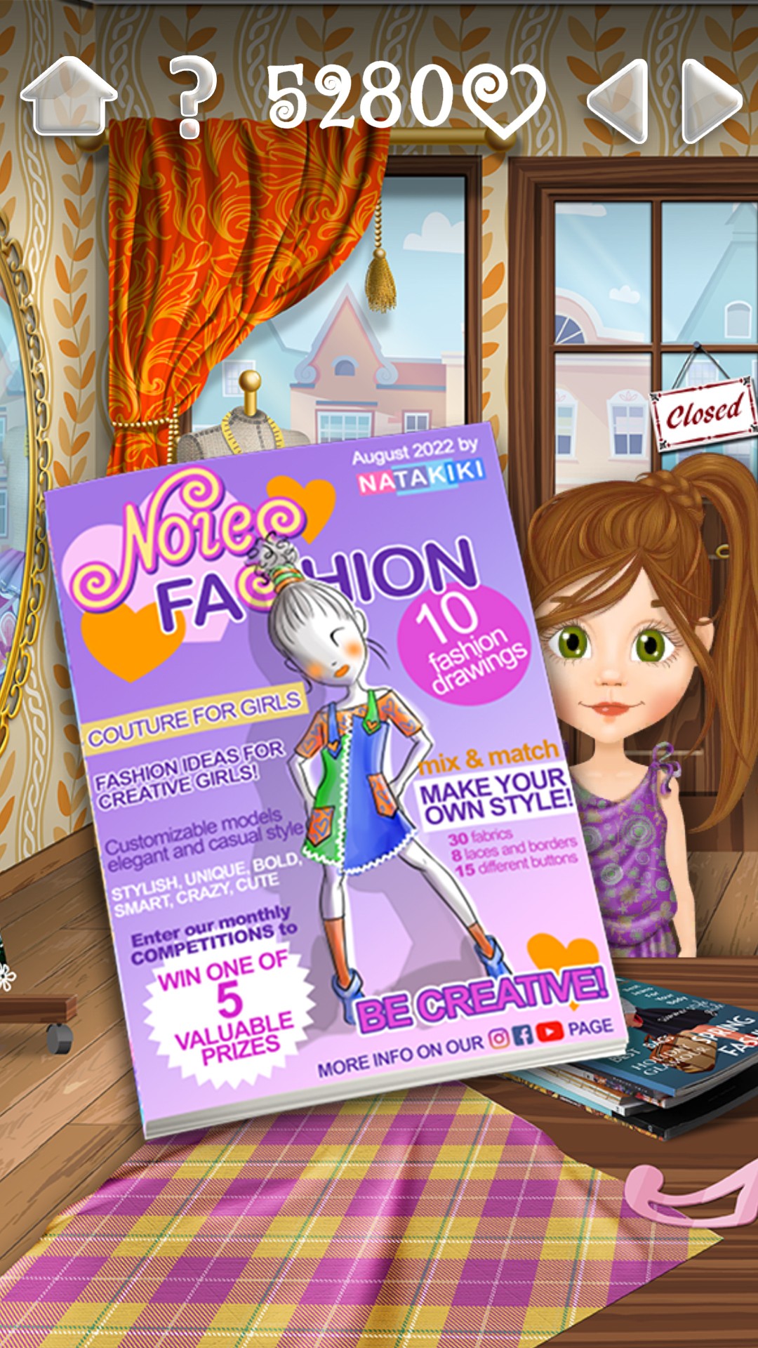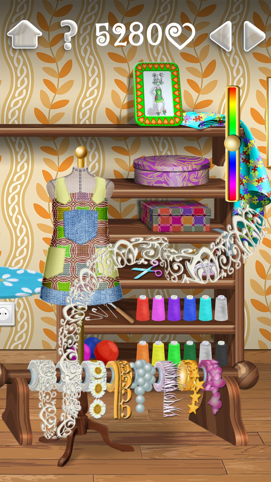 There are no “magic buttons” here and one click solutions! While making a dress, you’ll go through a series of tasks as a real dressmaker would Start at the beginning: pick a pattern, choose fabrics, cut, iron, add buttons, ribbons and sew the dress before it’s put on display.