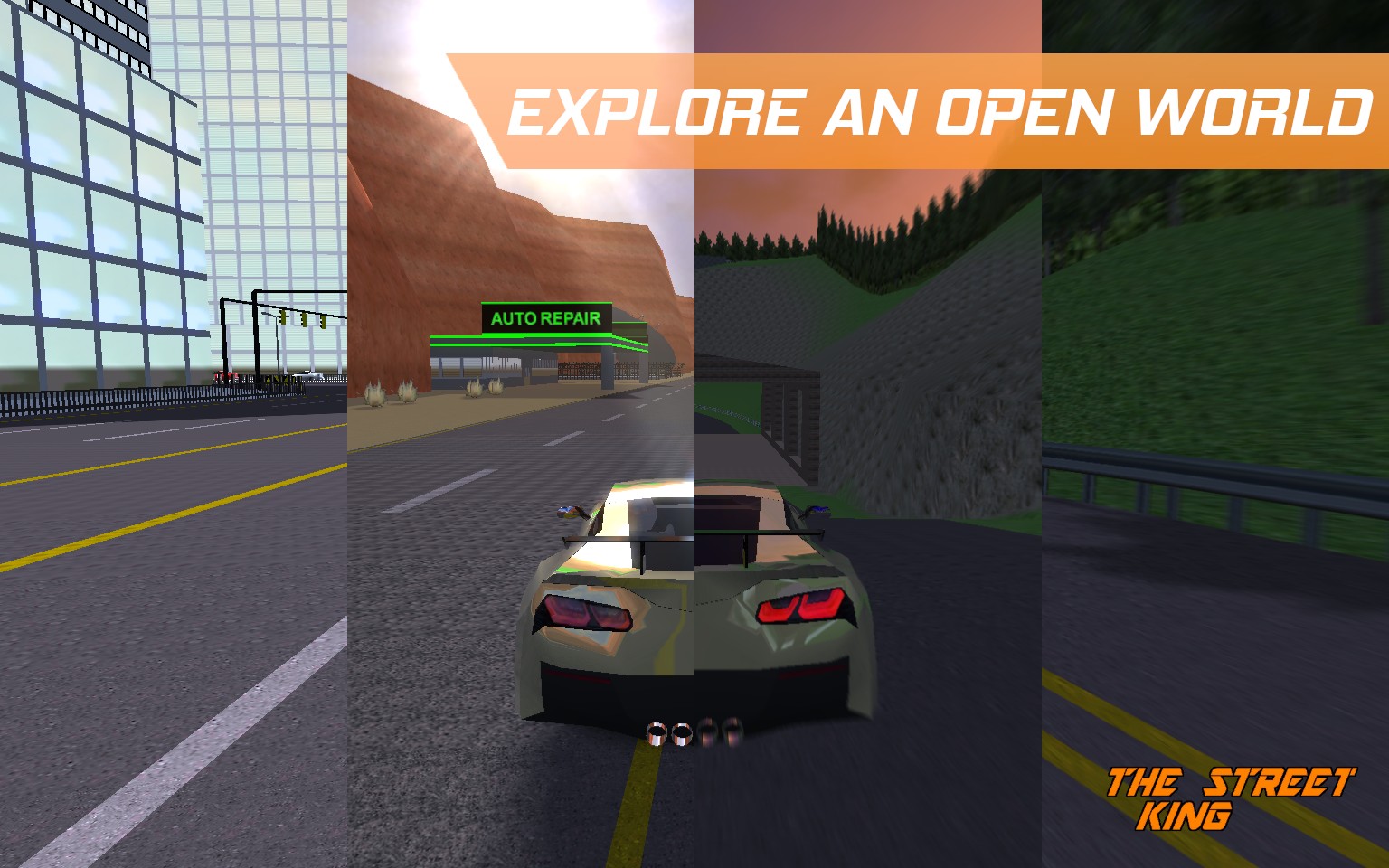 Enter the world of high-stakes illegal street racing in The Street King. Race in a vast and detailed open-world environment, dodge traffic cars, and escape from intense police chases.