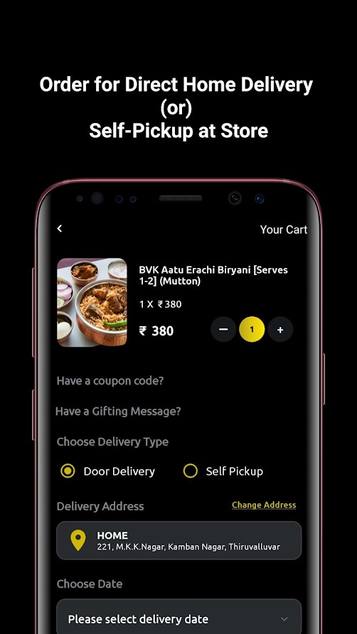 Takeout / Home Delivery – You can Pre-order your Biryani by opting for Direct Home Delivery or Self-Pickup at Store