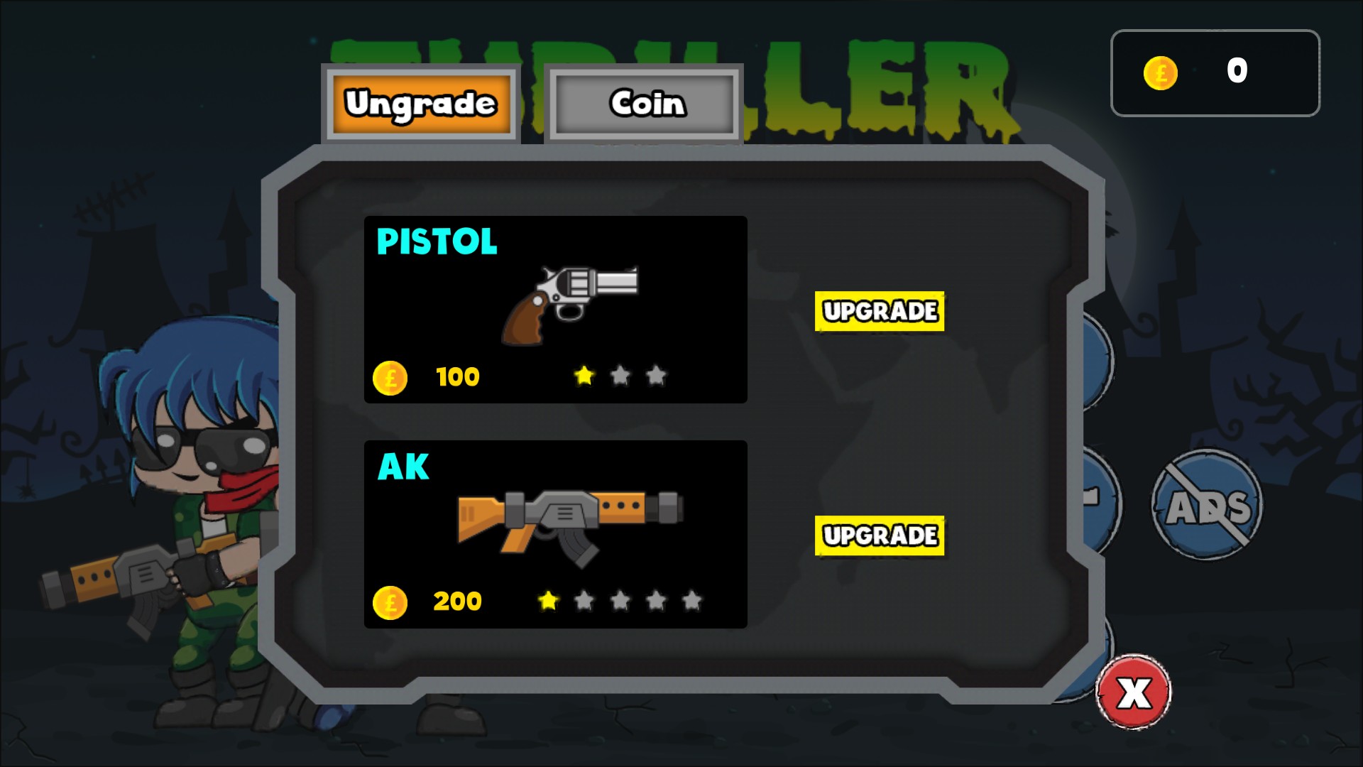 - On mobile: Tap the screen where appear button to control your character: turn left, shoot.