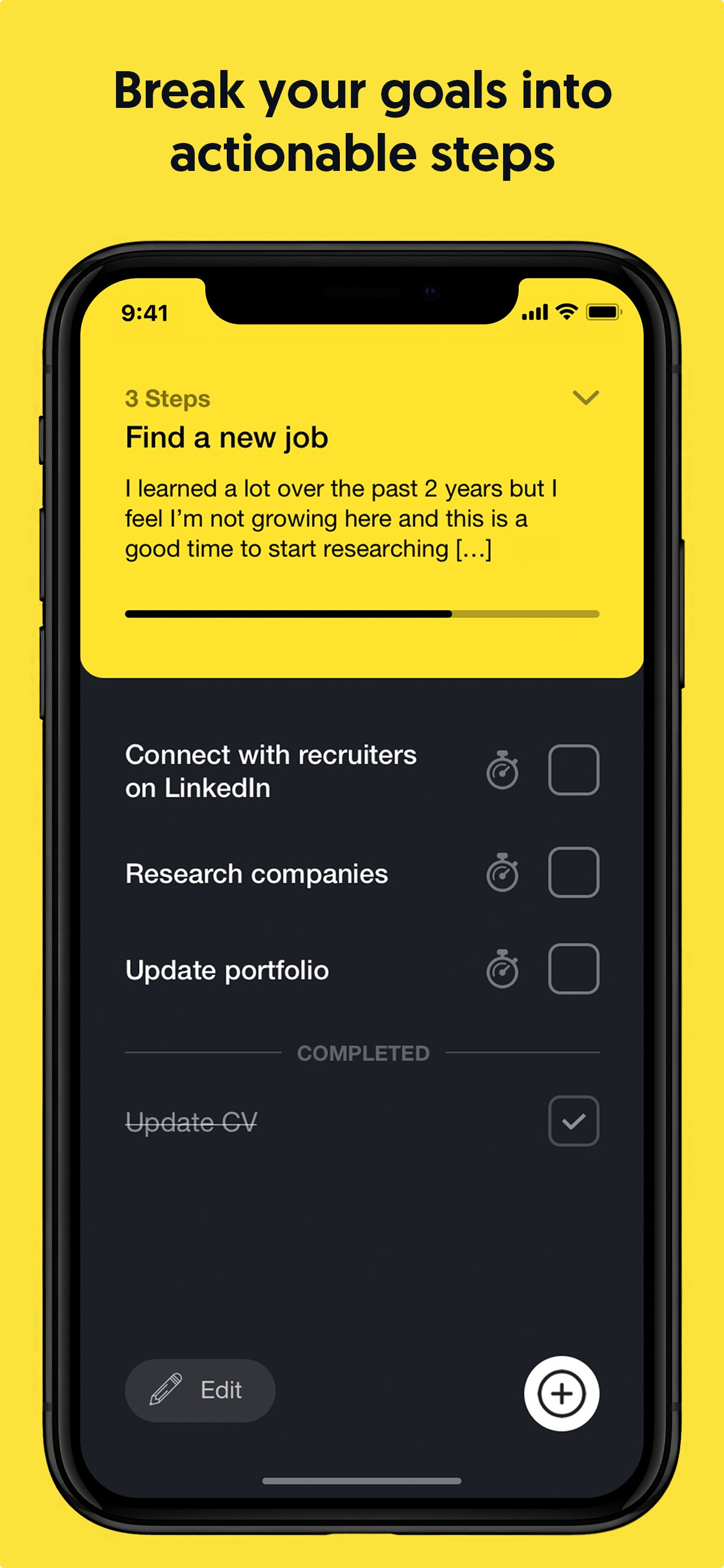 Make your goals seem less monumental and vague by thinking of the steps required to achieve them and working on one at a time.