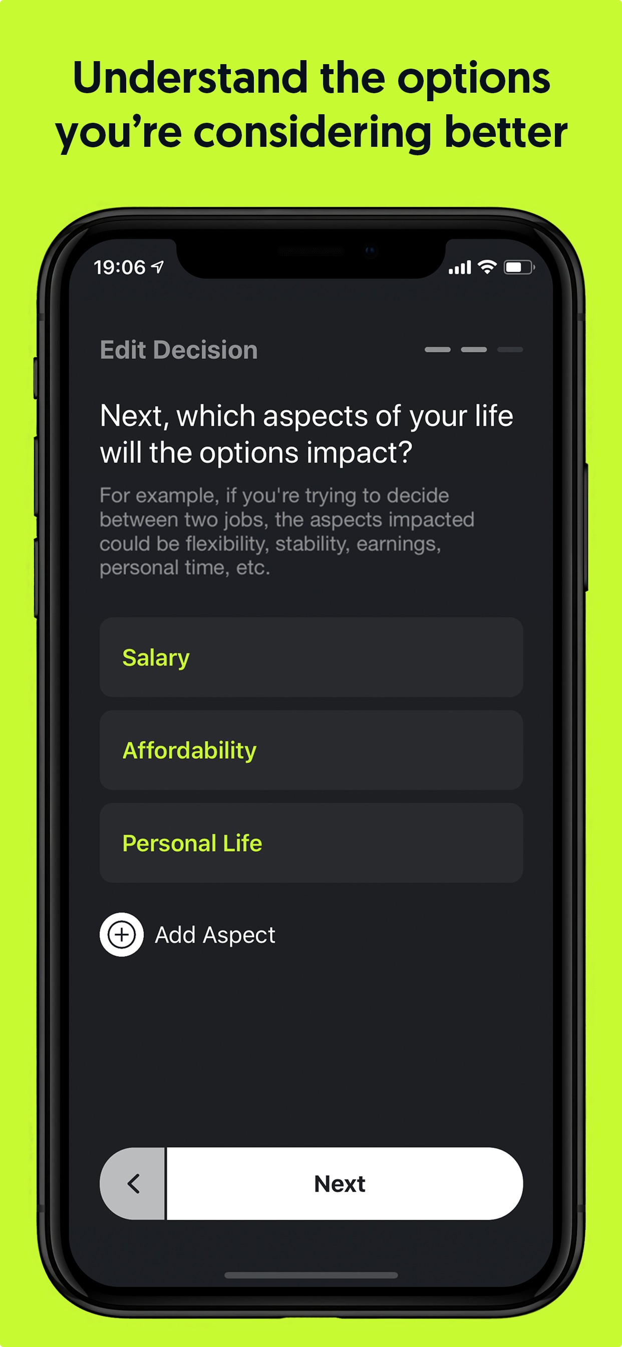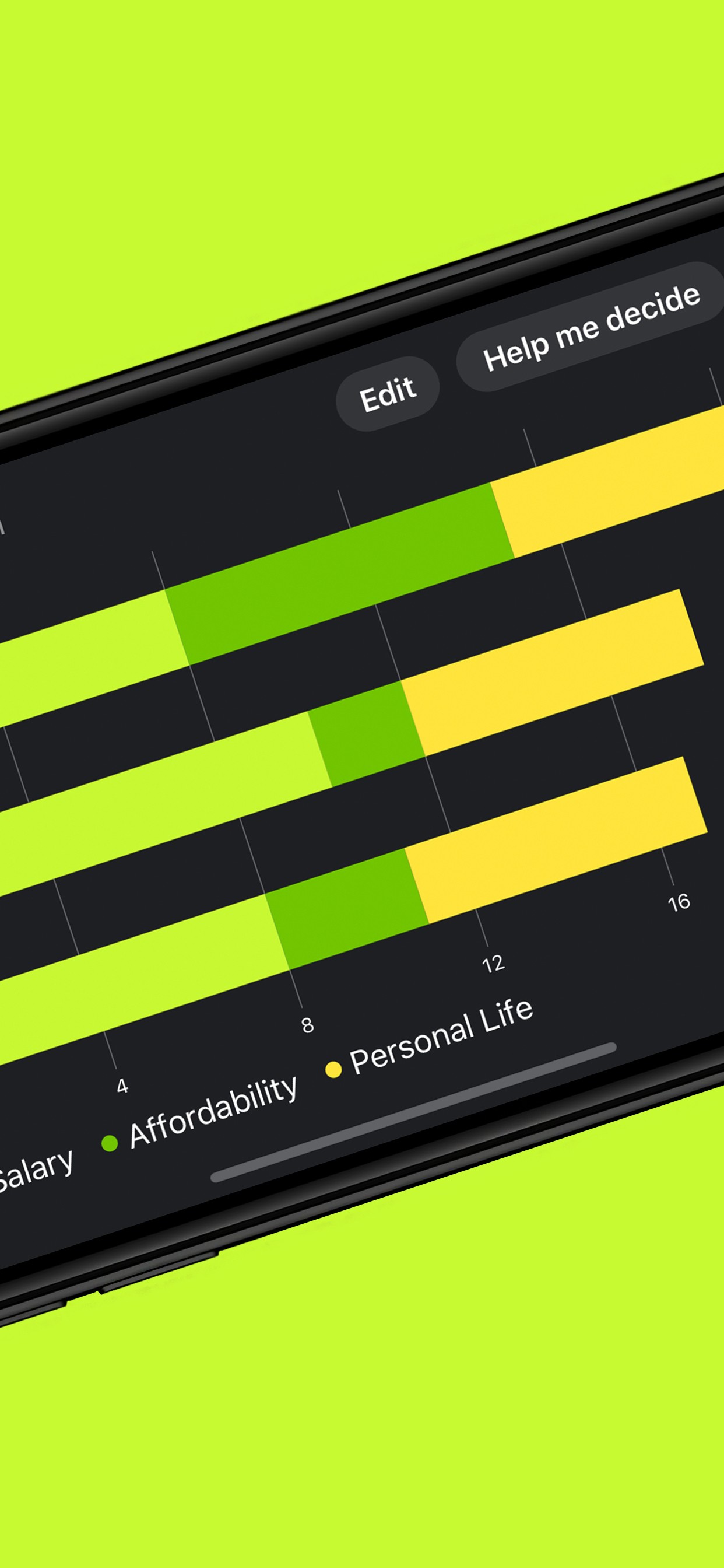 Make big decisions more manageable by visualising the impact of each option on the parts of your life you care most about.