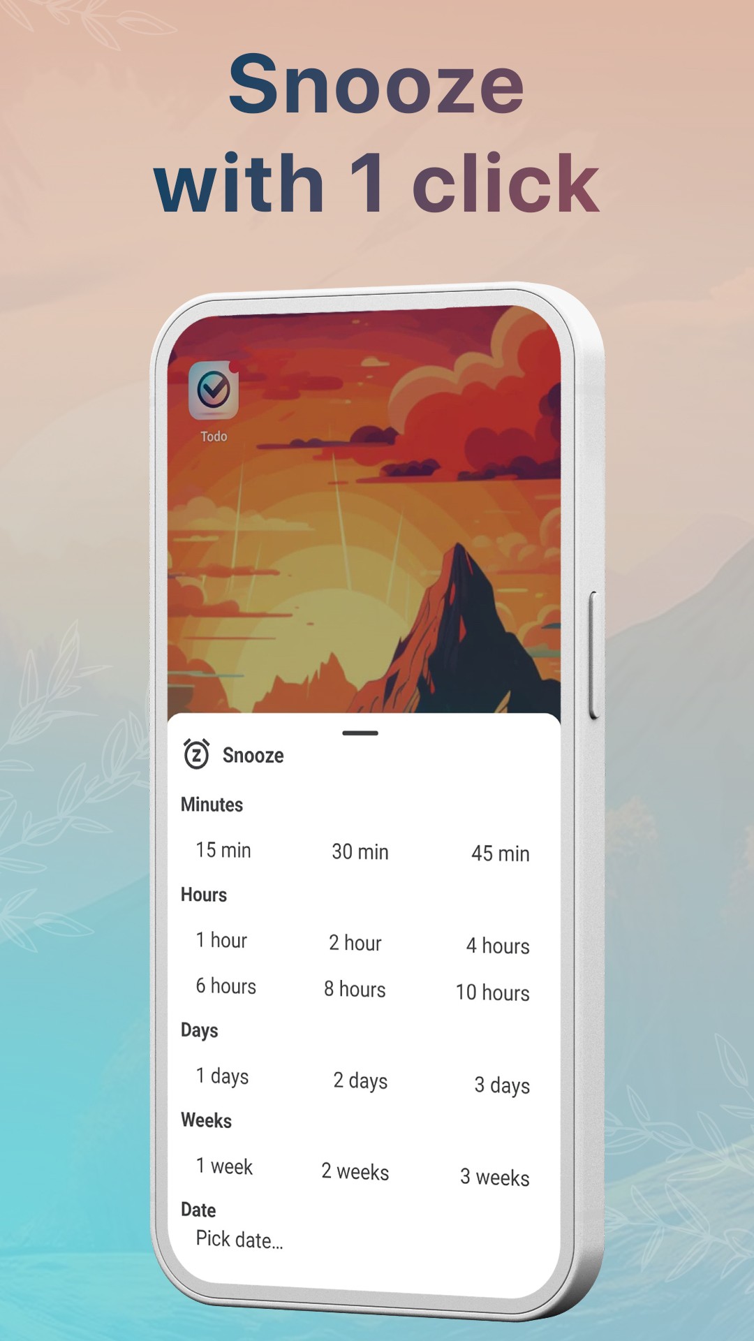 Reminders Get notified when tasks are due. All to-dos can be easily rescheduled directly from the notification with a single click.