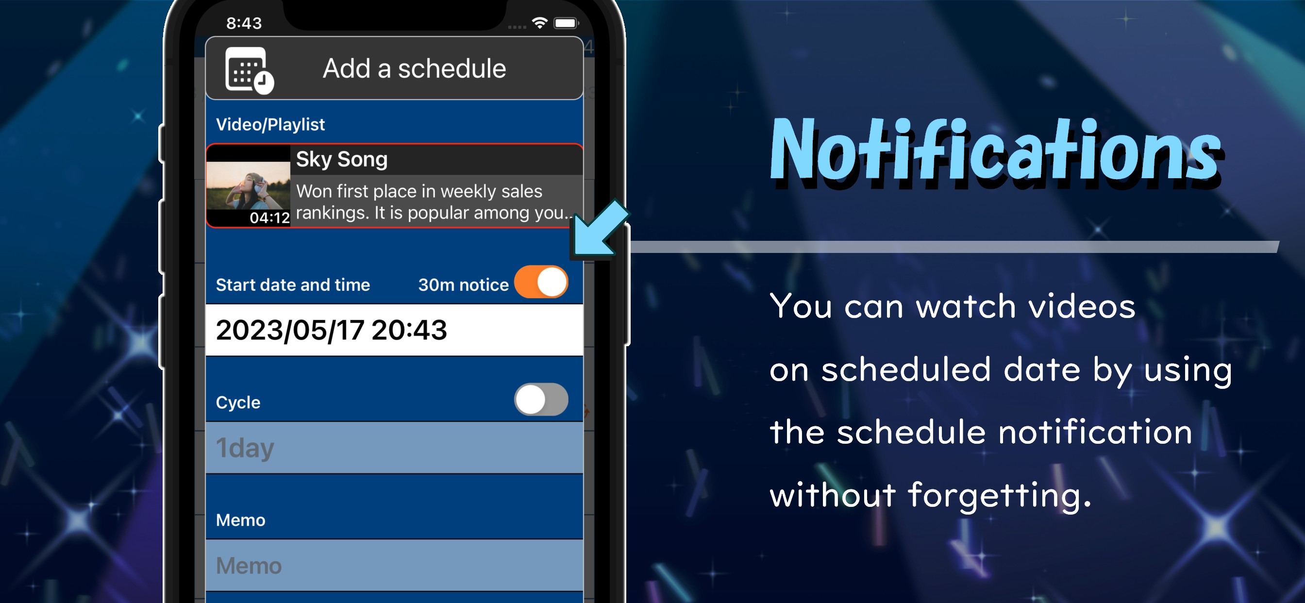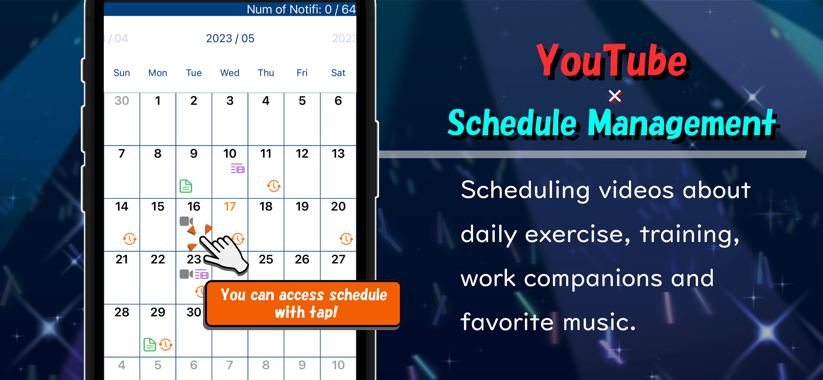 The app support you so that you can easily watch the desired video on the scheduled date and time with a chronological approach such as a calendar and timetable, and a search approach using tags and search words.