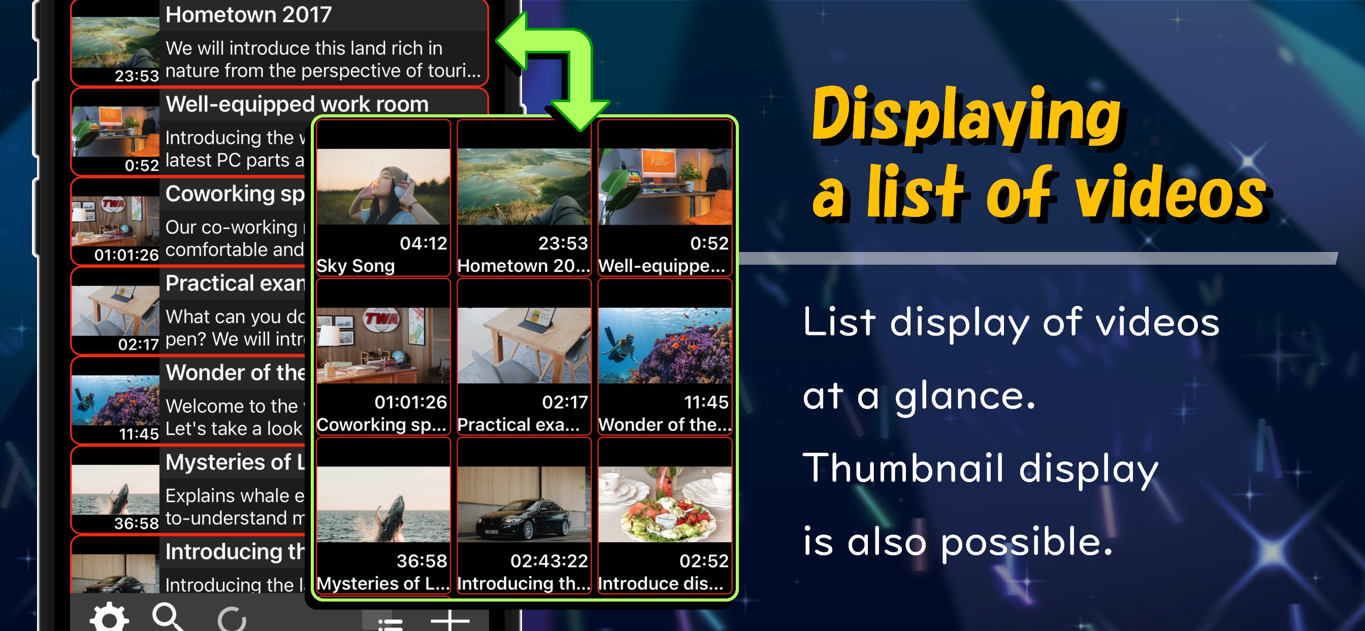 In addition, you can use convenient functions such as the ability to centrally manage videos in a group with a playlist and the ability to share playlists with other users.