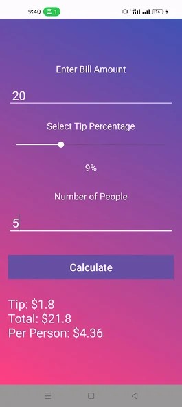 View Calculated Tip: The app will instantly display the calculated tip amount below.