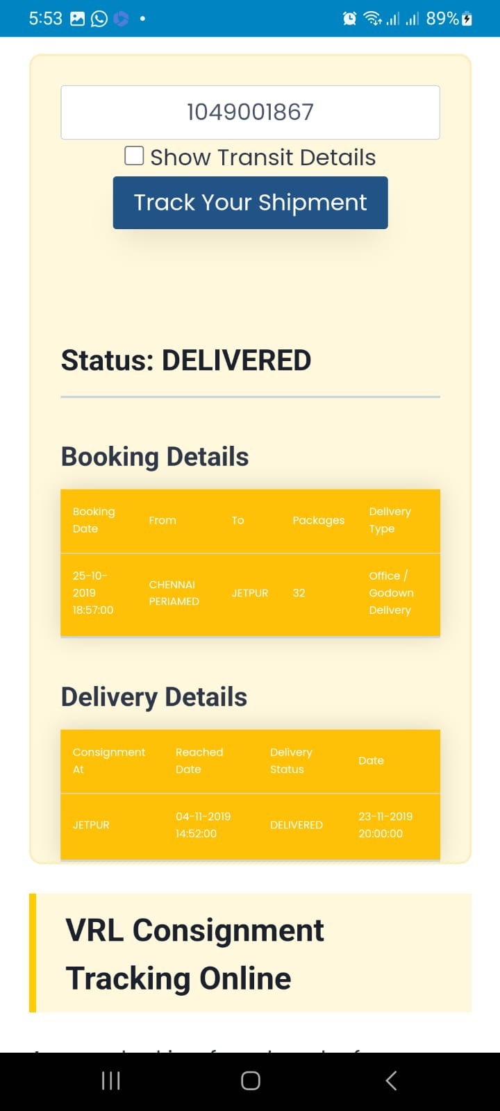 VRL Logistics Tracking app ensures that you have complete control and visibility over your packages, empowering you with the information you need to make informed decisions. Stay connected and track your shipments on the go with our reliable and user-friendly mobile application.