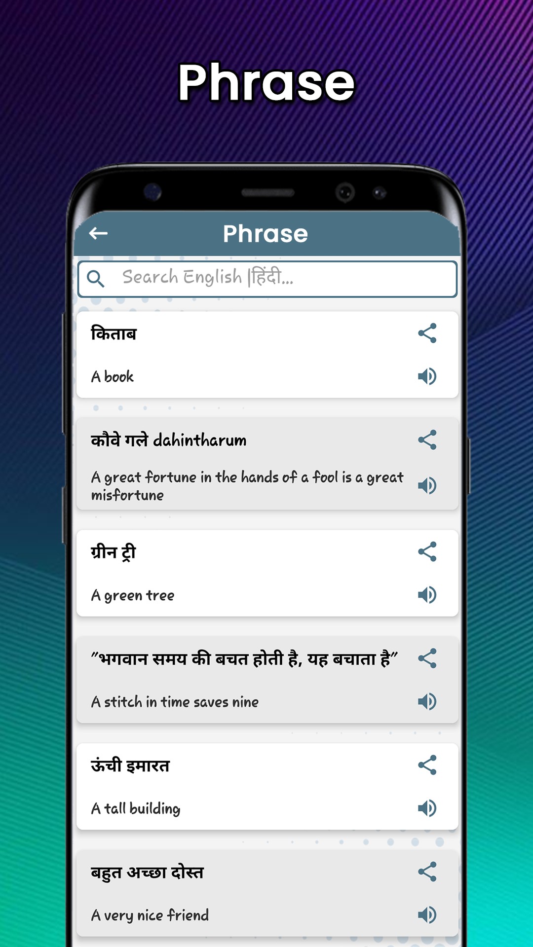 It's time to learn the beautiful language of Hindi for a few minutes every day! You can now use the Translator & Dictionary app on your phone to do just that. It has over 400,000 words and phrases for you to learn and put in your head. It also has an offline version so you can use it even if you don't have an internet connection.