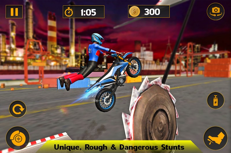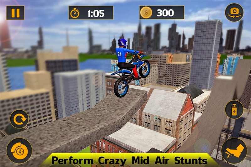 Become a bike stunt rider on rooftop ramps with tricky motorcycle stunt master game. Massive jumps, mid¬-air ramps with variety of paths for extreme stunts! Steer your bike through bizarre routes and dodge deadly obstacles. Stunt bike on wood tracks is a best chance for you to be tricks master in this racing 3d game. Time to perform as a motorcycle racer rider and complete all motor bike stunts missions in best of bike stunt games 2019. You need extreme stunt bike riding skills to drive safely on tricky impossible race tracks and curvy paths. You will feel like you are real smart bike rider on real crazy heights to accomplish impossible stunts racing and driving missions.
