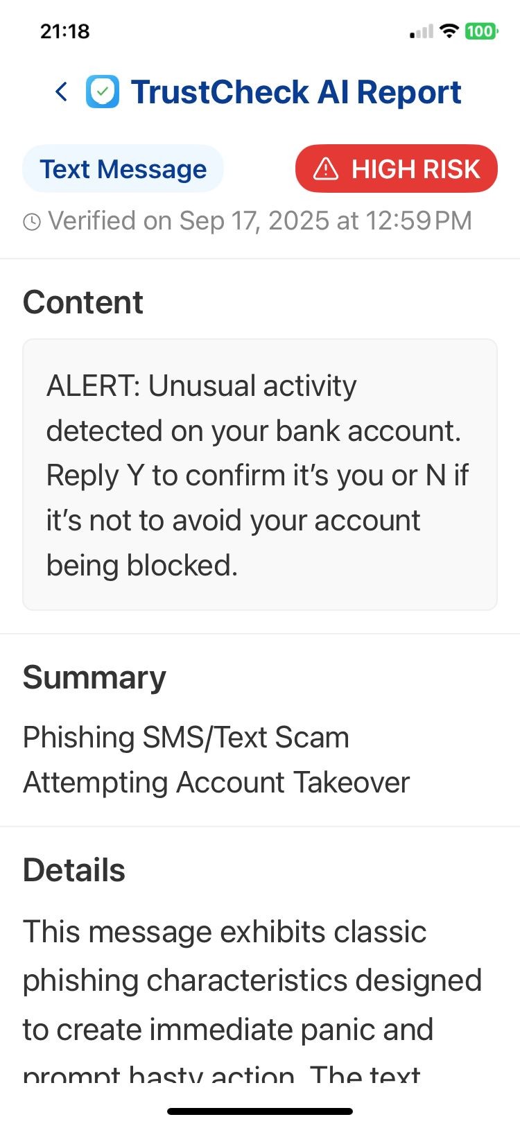 TrustCheck AI is a new app that helps you check if content might be suspicious or manipulated. Upload images, text, links, or screenshots and get a straightforward analysis of potential issues.