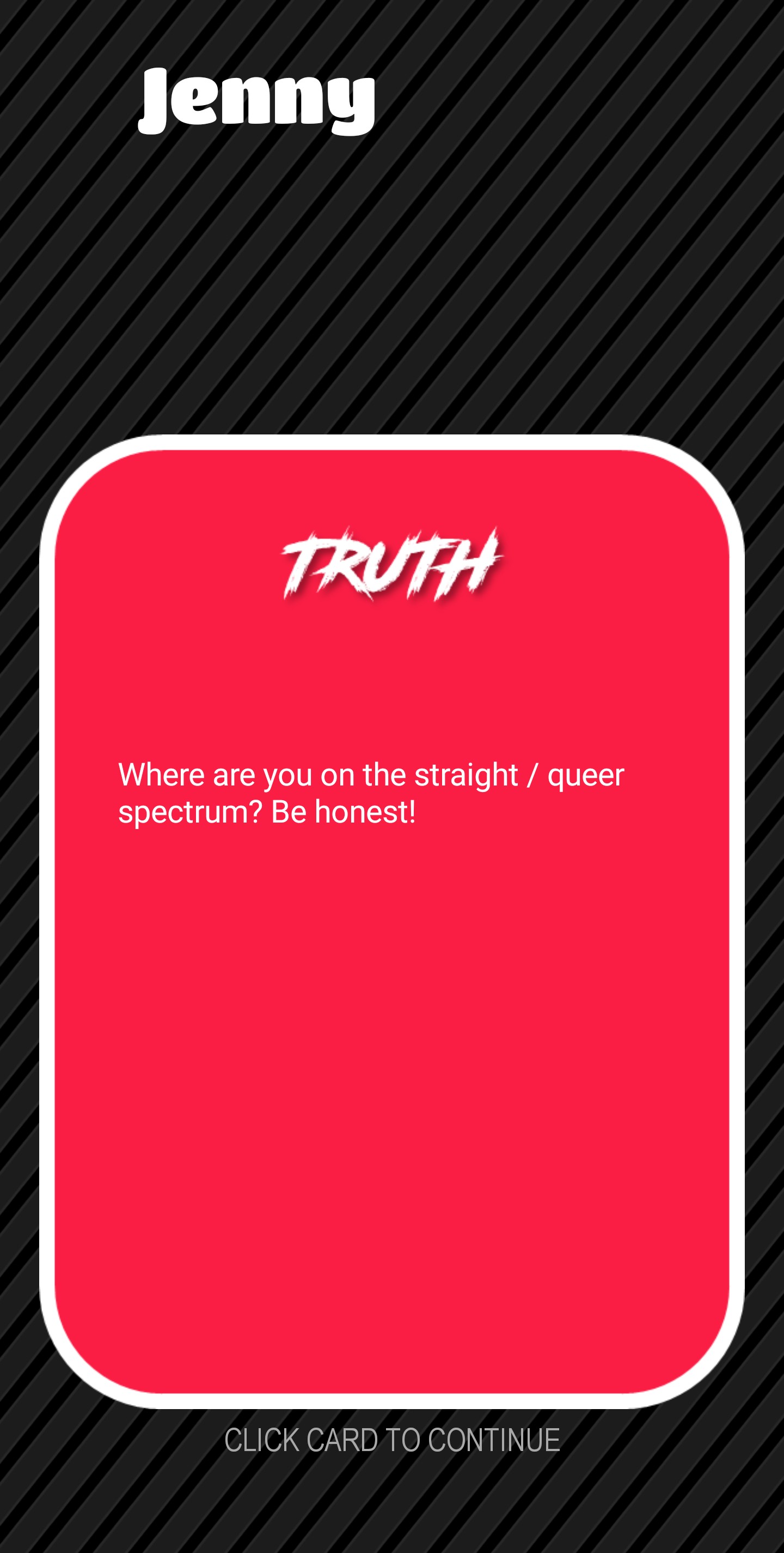 Truth Or Dare app contains hundreds of the best fun and challenging Truth and Dares ranging from Party, Casual and Spicy. This is the ideal Truth or Dare app for Parties, Dates, Sleepovers or just to break ice. It is a great and fun way to learn more about people you know. Great game for couples for a steamy fun night.