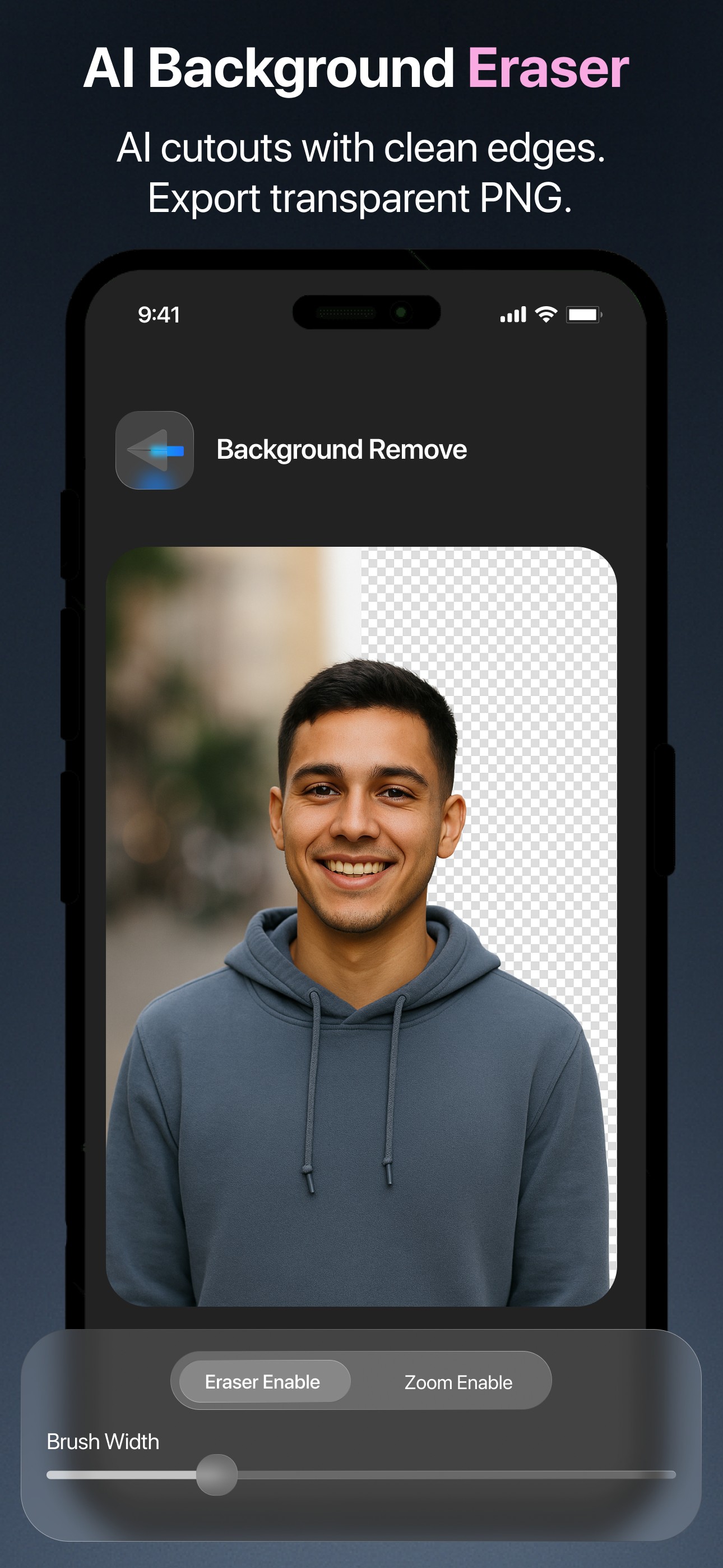 ● Background Remover — erase backgrounds instantly for clean cutouts and easy recomposition.