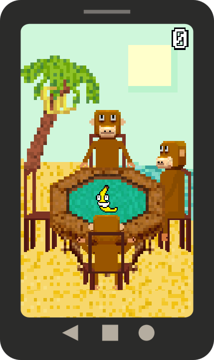 Twiddly Banana - very simple, but at the same time is a challenging game where you will play the role of a banana. The game begins with the fact that the table sat three monkeys who can not share between them a banana until they decide who gets a banana, you should as soon as possible to click on a banana and not let them eat you. Train your reflexes and wits trying to outwit all the monkeys, as well as their friends, with whom you will be able to play this game. The game will give you a bright pixel graphics and ridiculously simple controls. Show everyone your good response and set his record in this game.
