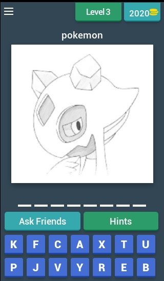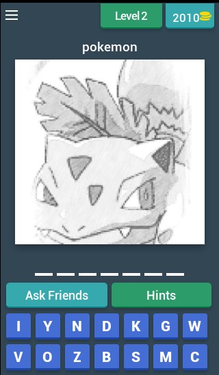 Description New Quiz game guess Pokemon 100% free! The game created the most beautiful images with a pencil. The game was made in English only. Works on different screens (for tablets and small smartphones) Play and grow! This is a game where you have to guess the names of pokemon in their images. If You like pokemon then test yourself and find out how well you know them —FAQs— The relaxed design doesn't hurt in the eye In the game 60 level New users will receive 2,000 coins For the correct answer the user will receive 10 coins Hint "Expose a letter" it will cost 20 coins Hint "Remove the letter" will cost 35 coins Help to "Solve the issue" will cost 45 coins 60 levels If you have questions: Write on e-mail We will gladly answer