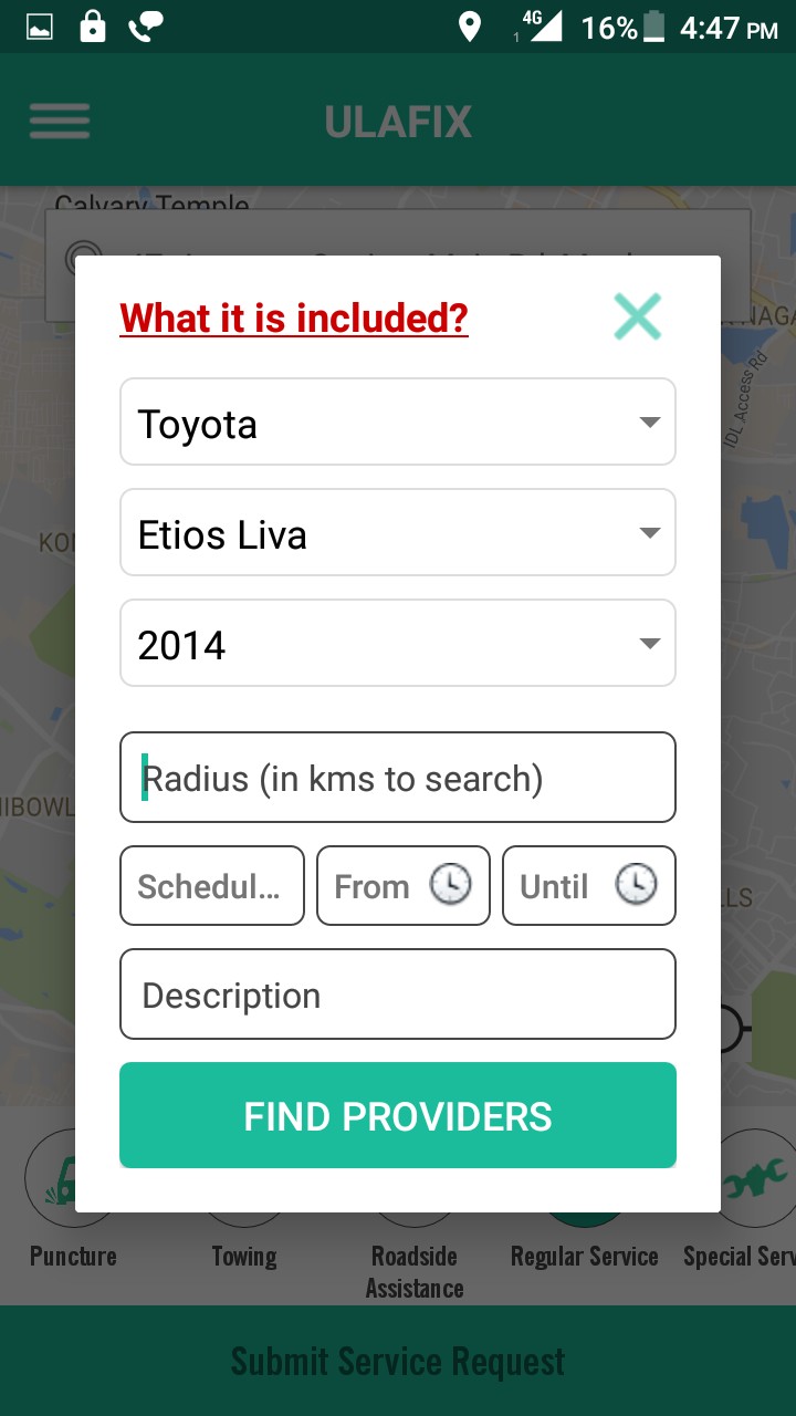 Lunching in 2016, dedicated car servicing and with network of 1600+ service providers. Our aim to make Ulafix “Fully Automated Vehicle Care App” that means truly automate using technological advancements. Now no need of calling manually to different places to check on availability and compare pricing. Based on your phone Geo-Location Ulafix will find the the service providers around and send request. Providers send estimates and customer gets the best choice based on the bid, job is automatically schedule-all on the phone.