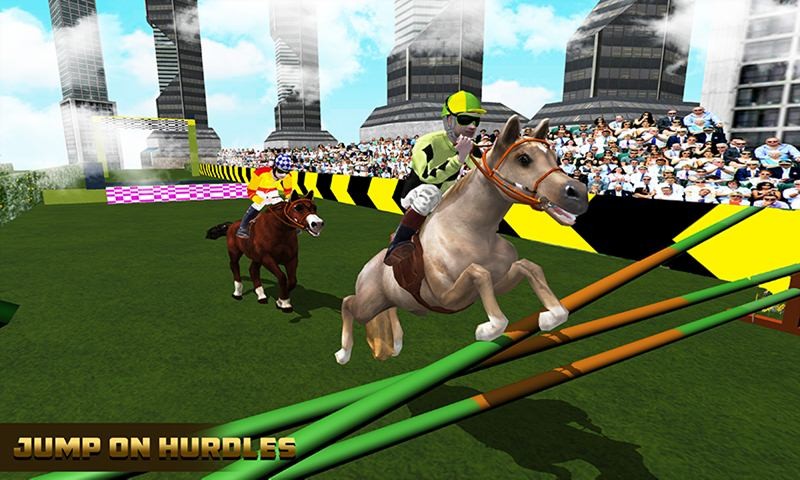 Ultimate Horse Racing Simulator 3D is adventurous game with interesting gameplay where you play as jockey horse to race. Smooth control and compatible user interface will be additional exquisiteness of this racing horse simulator. Multiple challenges and missions will excite to entertain you in the gameplay. Initial levels will be an easy task for you to accomplish it successfully but upcoming levels have pleasure and passion for those who love to ride the horses and steed. Start your mission, sprint on horse and move towards target with extraordinary command and expertise. Different interesting stadiums like grassy, snow, mud and city environment will make you able to become professional in all arena. Jump over the hurdles and reach the terminal point first. You must care that your horse hoof does not touch the crossing hurdle barrier and landing smoothly. Race continuously and dodge the obstacles with perfection to become master of this horse racing challenge simulation. Defeat the all opponents and win horse derby championship. There are many hurdles comes in your way and your horse can cross these hurdles so efficiently by pressing the right bottom button. You must control your horse speed and look ahead upcoming hurdles. You must continue this racing challenges till to complete your level successfully.