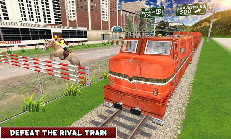 Ultimate Horse vs Train Race simulation specially designed for the all age’s groups who love steeplechase racing games and horse games. Cross the upcoming barriers in the beautiful racecourse like an apprentice jockey. Improve your horse riding and horse racing skills by defeating the rivals train. Fabulous environments of amazing city, hilly and desert environment is waiting for you in this bullet train game.