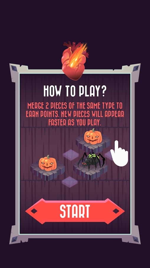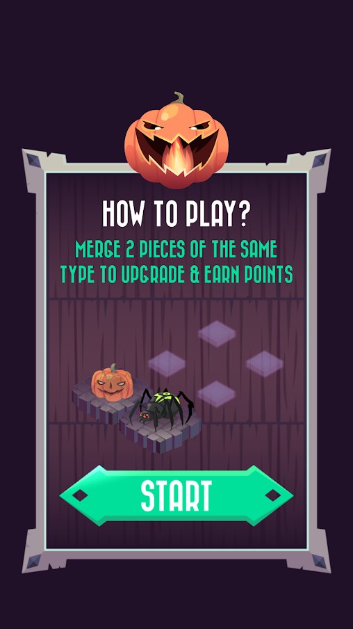 This Halloween, someone or something started summoning monsters in the castle... Enter its walls and face the horror. Mix and match similar ghouls, monsters, ghosts and demons to make progress in this spooky version of classic puzzle game 2048. Matching two similar creatures makes them evolve, leaving a blank space and helping you survive -- start with pumpkins and end up opening the gates to Hell. Are you ready for this?