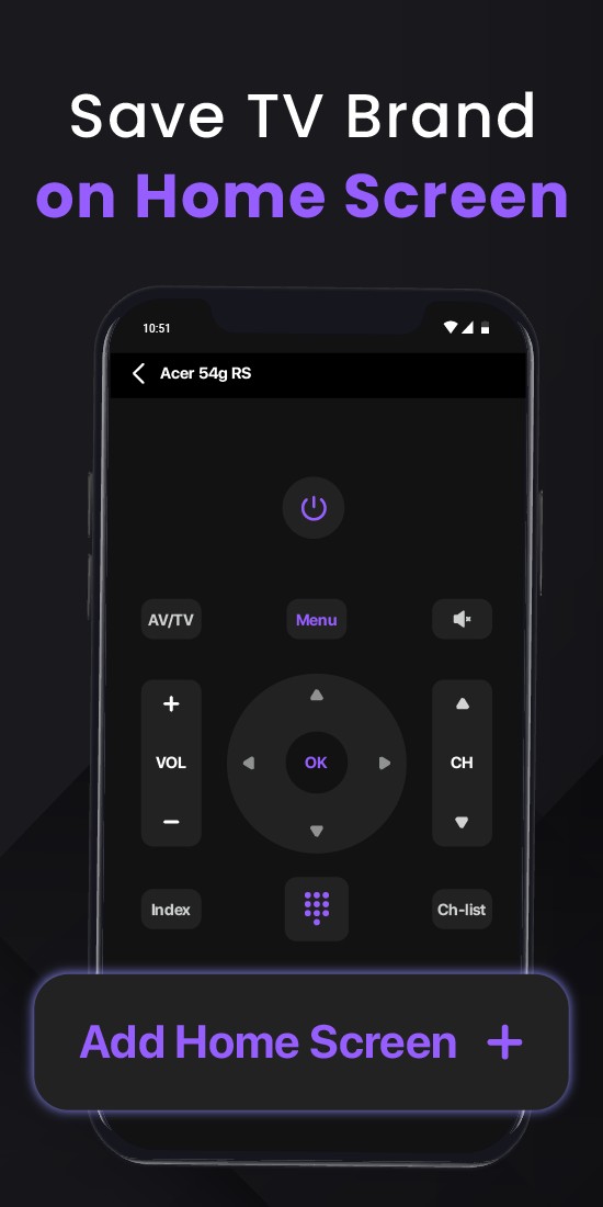~ Open App - Select TV Remote - Select TV Brand - Select TV Model - Click ‘ Add to Home Screen’