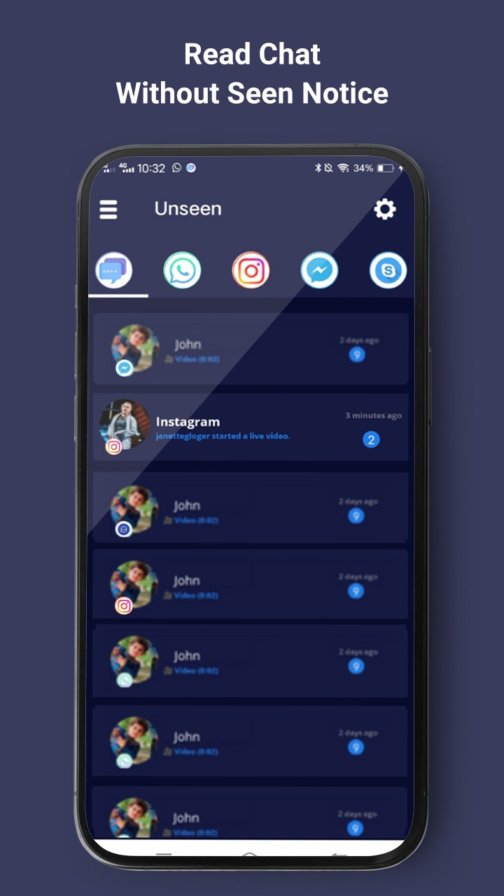 It is possible to read text messages without reading the sign and seeing the blue tick, invisible online status, and Unseen is the last viewed on Chatting Apps with the app Unseen - No Last Seen.