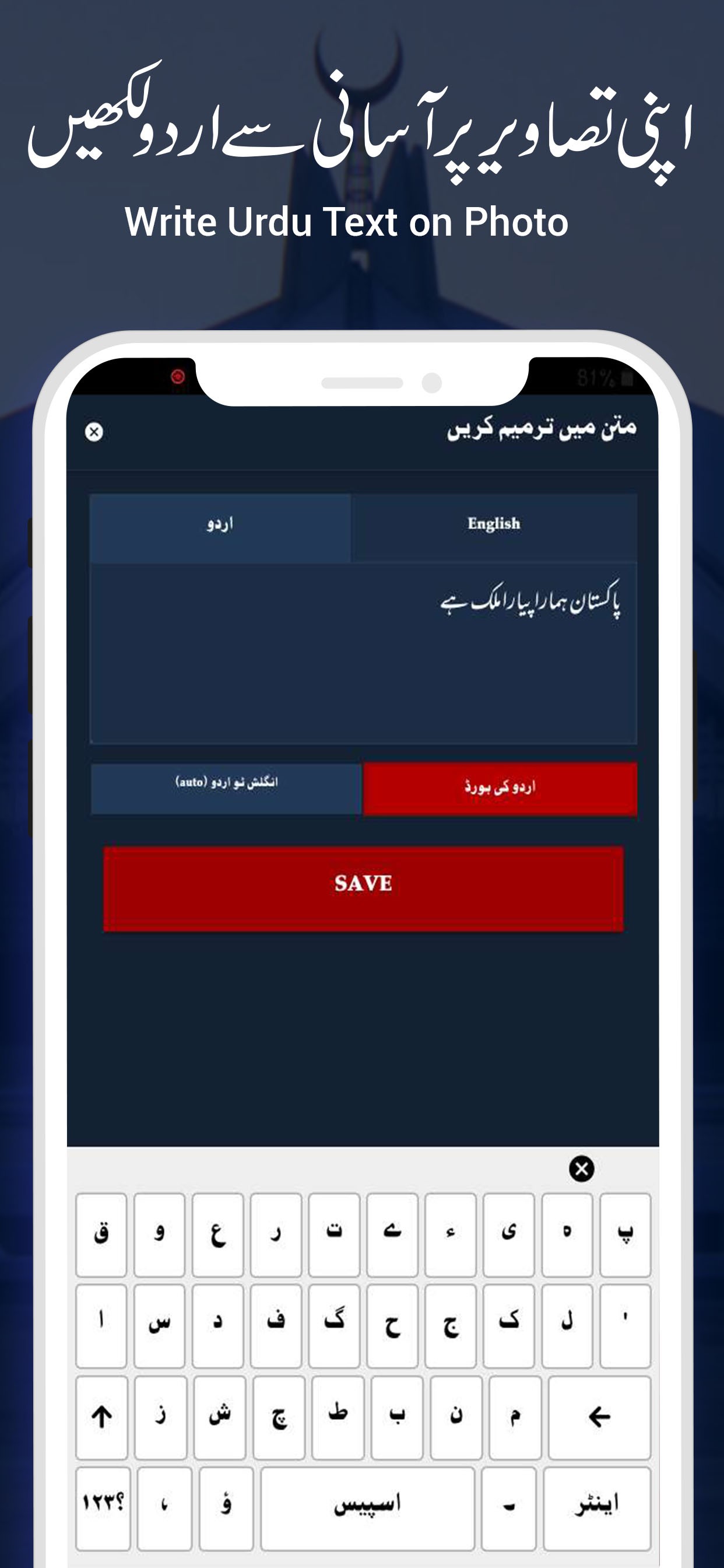 Urdu on photos app gives many options to write poetry and Urdu text on photos. Users can select an image from the gallery or capture the picture from the camera.