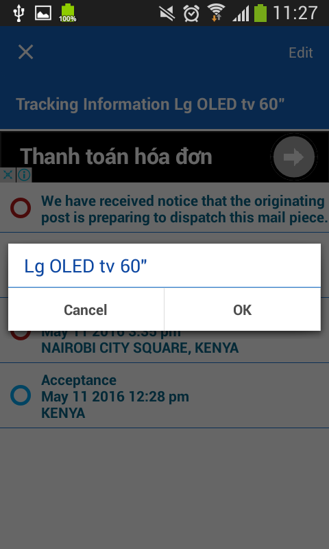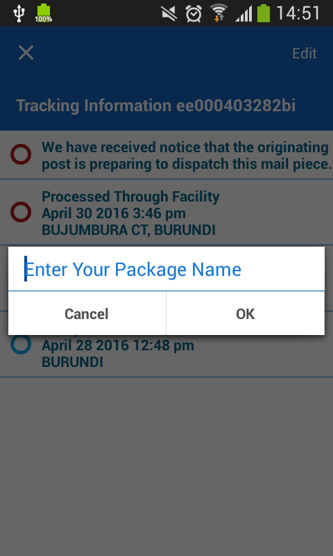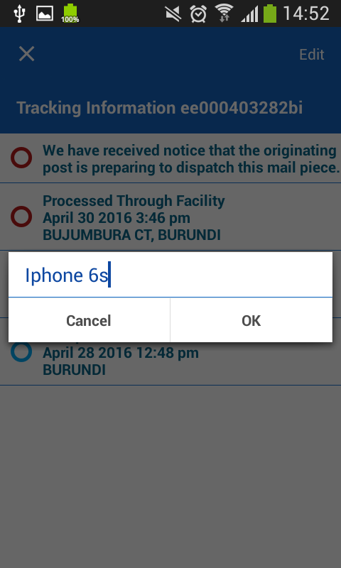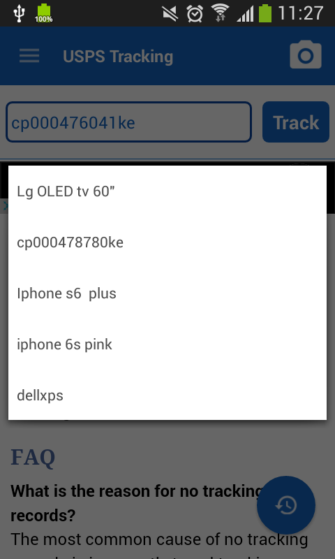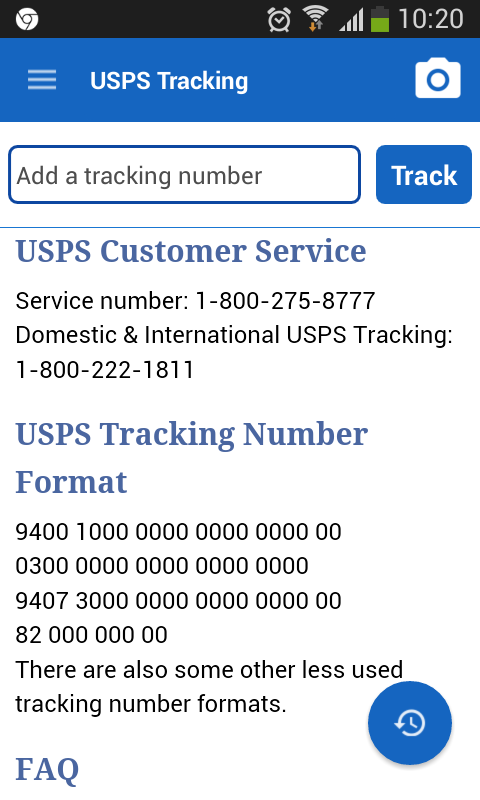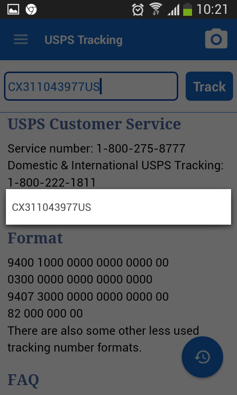 - Tap "Track" button to getting data from USPS Tracking Services When the result has return you can view you status's shipments, if your request is legal, your USPS Tracking ID will be saved to use in next time