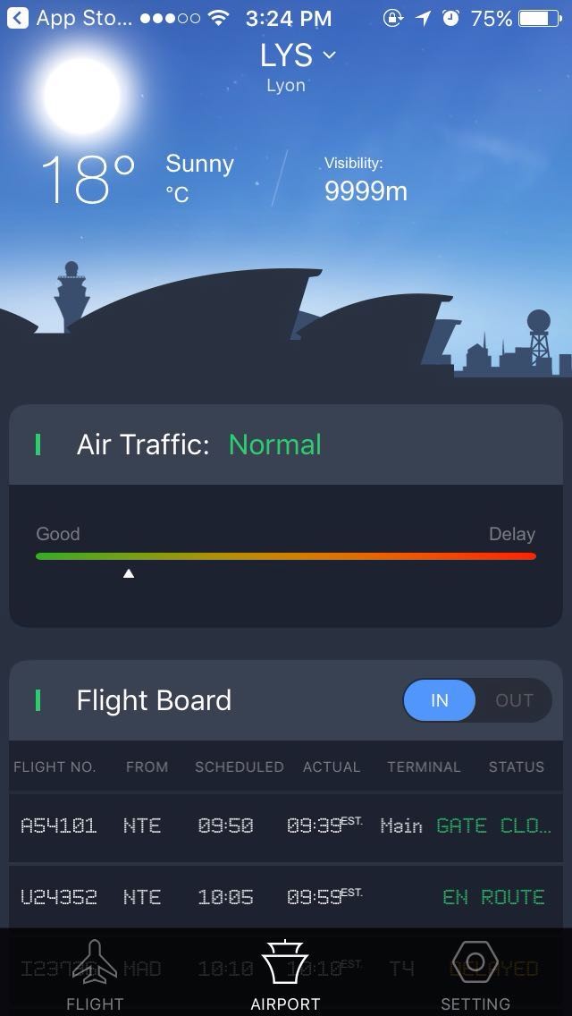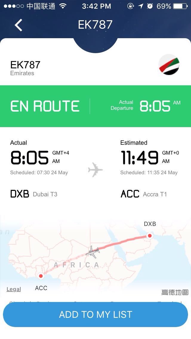 It provides users with real-time flight status info, incl. current location on the map, scheduled and actual time of departure and arrival.