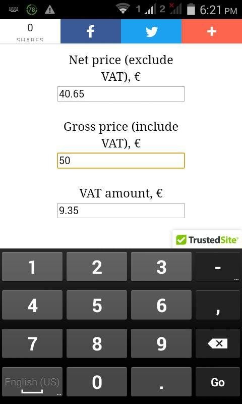 Add or remove Value Added Tax in a few keystrokes with our VAT calculator app. By default VAT rate is set for UK VAT calculation.