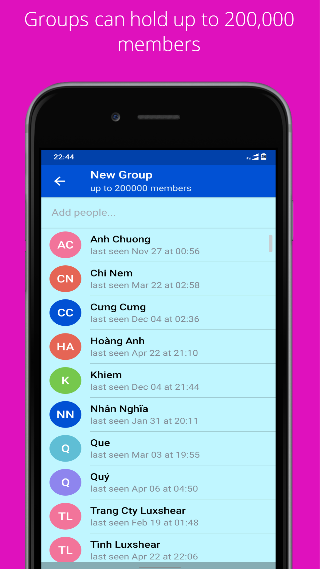 With this app, it's simple to set up and join the group chat - connecting up to thousands of people at once! Enjoy inviting people you love into group chats, teamwork, and convenient events. You can also "like" a user's message or send a voice message to someone you're interested in.