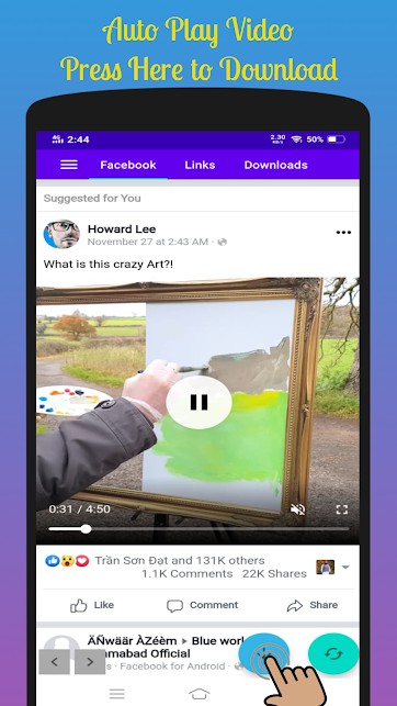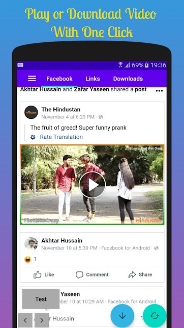 Now download facebook videos (descargar videos de facebook) with this 100% free fb downloader. You can browse facebook with the built-in browser and watch funny videos online or videos of your liking from faceboo and it will become your facebook watch app. When you click to play the videos from facebook you will see a download button will vibrate at the end of your smartphone screen. Just click that button and your download will start in no time. Now download facebook app (descargar facebook) to enjoy our free unlimited services.