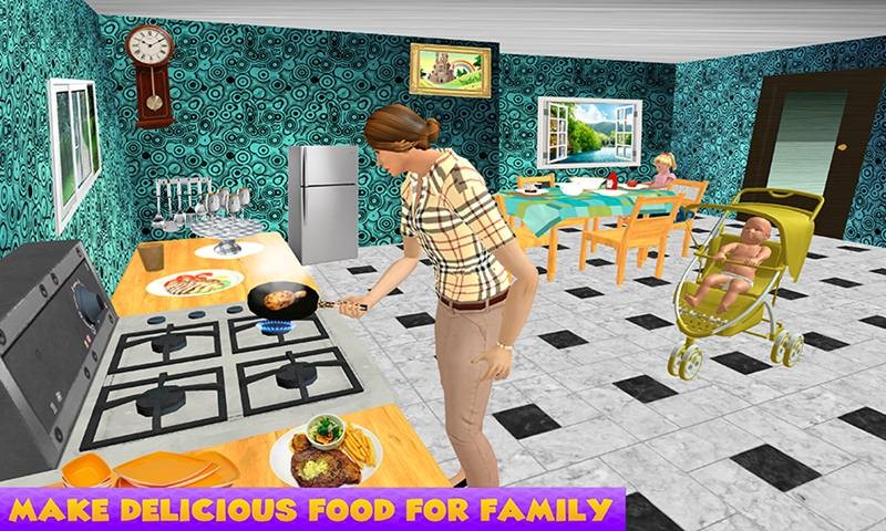 Playing as a virtual mom, you have to fulfil the responsibilities of the mom as well as the virtual dad respectively who is working in another city. Single mom having the task related to cook the delicious and yummy food for family. Shopping with family at shopping mall, drive the luxury car towards the shopping mall and many more amazing task to play. Fabulous 3D environment of home and shopping mall gives you the realistic feelings.