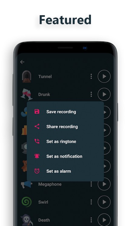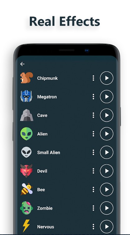 • More than 25 effects: robot, alien, zombie, helium, drunk, chipmunk, death, cave, underwater, devil, telephone, swirl, fan, ... and many more!