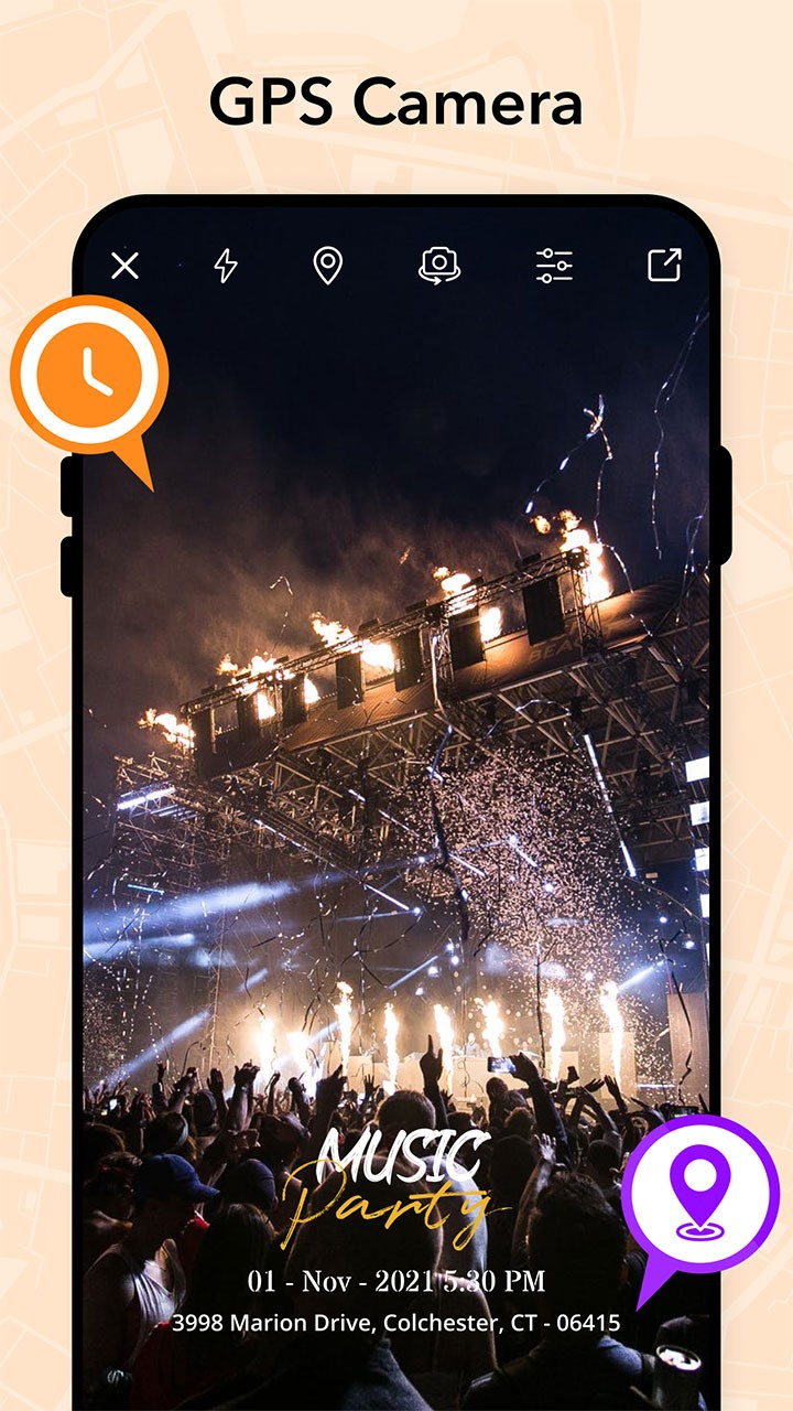 Open Camera is a feature that attaches dates, times & addresses to your photos with an open camera. This recollects the visit to the location & adds photos along with the camera option.