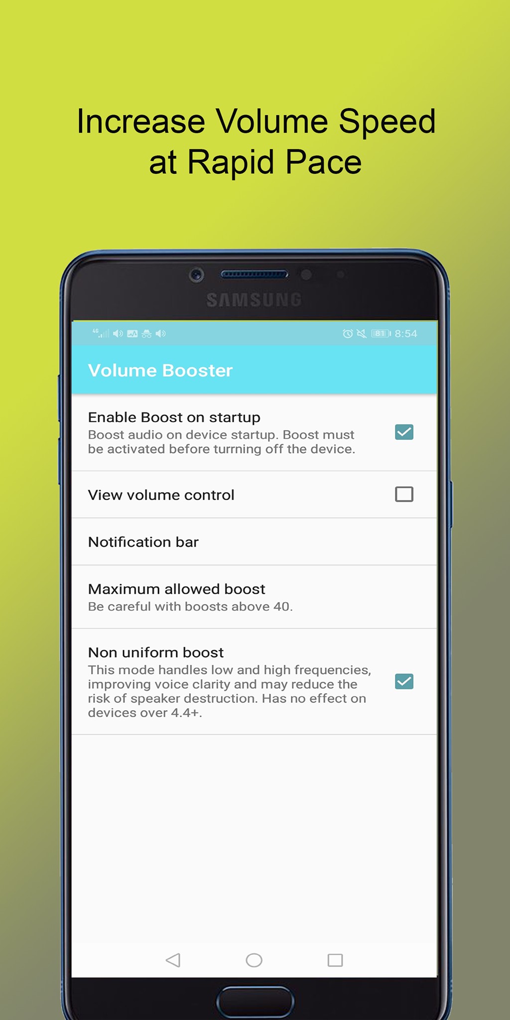Sound booster is an essential tool for the music lovers. Increase sound volume with this easy speaker volume booster for android. This is the best volume speed increaser helps you to speed up the sound of your mobile volume easily. The volume maximizer enhances music lover to speed up the volume of their android mobile devices.